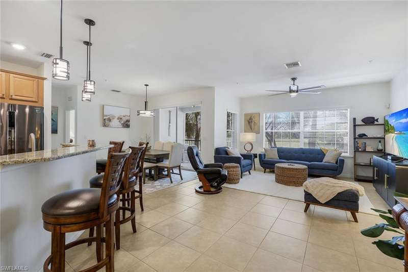LOCATION, LOCATION, LOCATION! Mirasol at Coconut Point... This beautiful 2 Bedroom+Office/2 Bath Coach Home has an attached 1 car garage for your vehicle as well as in unit laundry room for your convenience. The unit has a split floor plan with the large primary bedroom on one side and the guest bedroom, bath, and office on the other. The living room, dining room and kitchen offer a spacious open floor plan. Designer touches are in every room with comfortable contemporary furnishings and a soothing beachy feel throughout. A screened lanai with water feature provides an outdoor oasis. The nearby clubhouse, oversized community pool, and fitness room are available for your daily enjoyment. Mirasol is in a perfect location within walking distance to Coconut Point shopping and dining venues and is also in close proximity to FGCU and Southwest Florida International Airport.