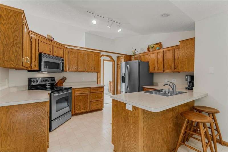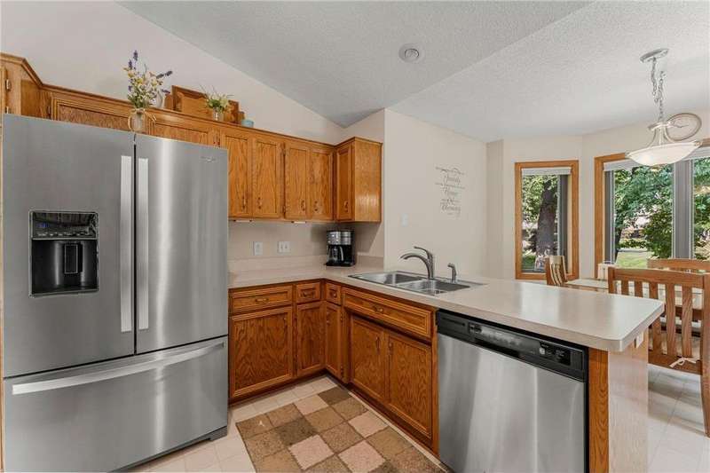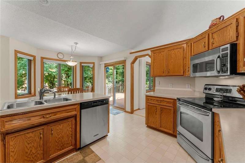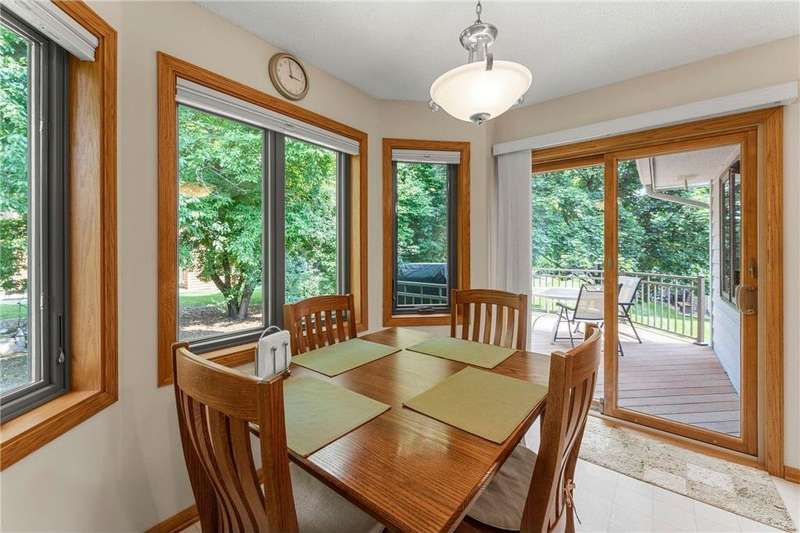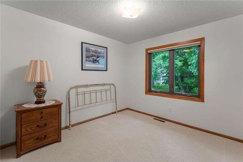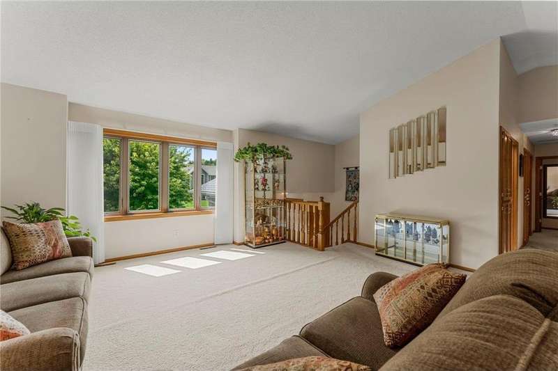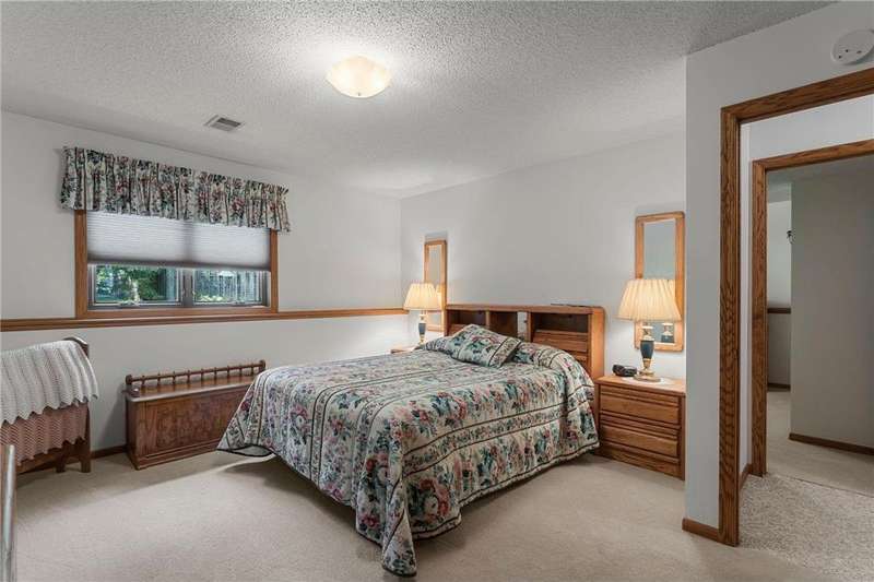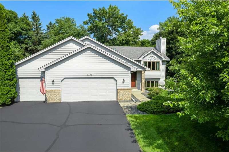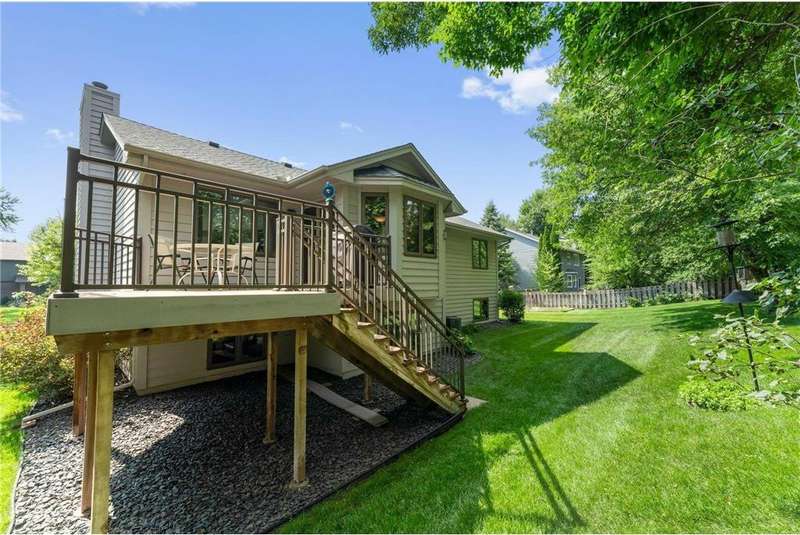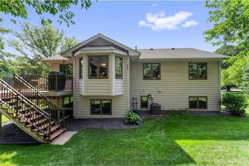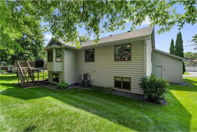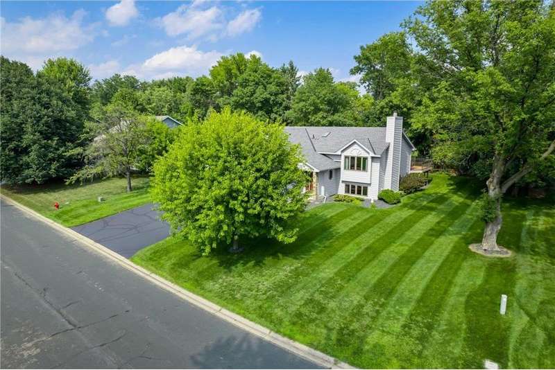 Located in a highly desirable Eagan neighborhood within School District 196, this beautifully maintained home is less than a block from award-winning Woodland Elementary. Offering five bedrooms, three baths, and a three-car garage, it sits on a nicely sized lot with mature trees, in-ground sprinkler system, space for gardening or a playset, and a composite deck perfect for relaxing. The main level features a spacious living room with vaulted ceilings, formal and informal dining areas, and a kitchen with stainless steel appliances. Three bedrooms, including a primary suite with a remodeled ¾ bath, plus a full shared bath, complete the main level. The lower level boasts a large family room with bar and woodburning fireplace, daylight/lookout windows, two additional bedrooms, and a remodeled ¾ bath, along with laundry, utility room, and storage space. The three-car garage with epoxy floors is ready for all your storage needs. Newer roof, windows, furnace, A/C, water softener, etc. See supplements for updates and upgrades! Carpets will be stretched before closing—just move in and enjoy!