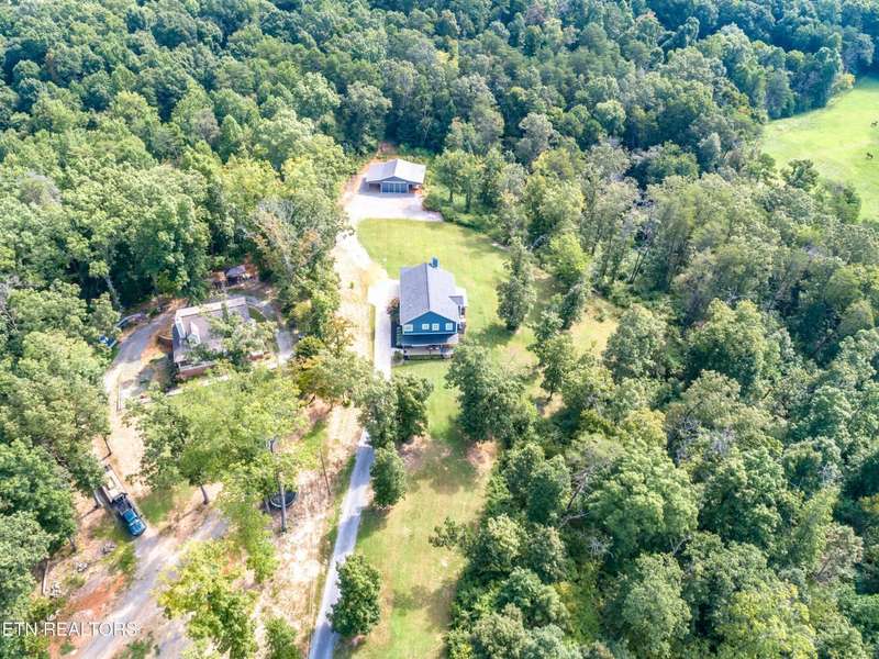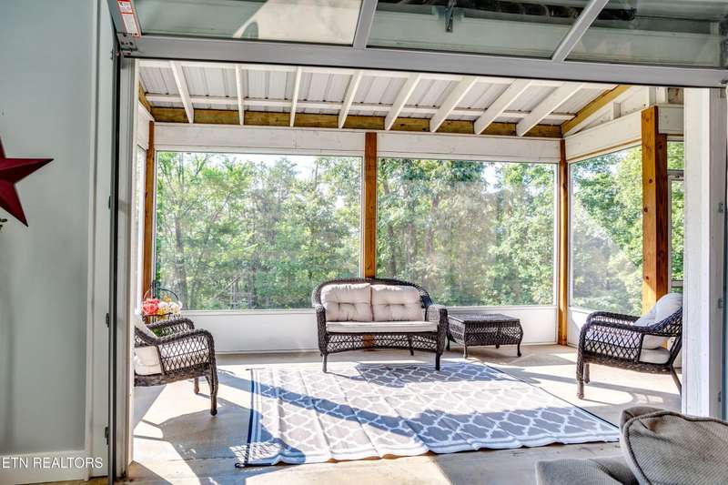 Welcome to 4207 Clyde Thomas Road, a modern two-story home offering space, privacy, and convenience on 11.39 unrestricted acres in the heart of beautiful, scenic Hamblen County TN. With 3,264 square feet of living space, this property features 4 bedrooms, 3 full baths, and 2 half baths.The main level showcases an open floor plan centered around an open-air living area, where a full-view retractable glass garage door connects the living room to a screened patio. This design creates a seamless transition between indoor and outdoor spaces while filling the home with natural light, fresh air, and seasonal mountain views. The kitchen is equipped with stainless steel appliances, a large island, a large pantry, and dining area, complemented by a wood-burning fireplace, mudroom, and two convenient half baths.Upstairs, the luxurious primary suite is a true retreat, featuring an oversized walk-in closet and a spa-inspired bath with a free-standing soaking tub, double vanities, and a zero-entry tile shower that blends beauty with function. Three additional bedrooms complete the upper level-two share an elegant Jack-and-Jill bath with generous counter space and dual sinks, while the fourth offers its own private en-suite bath. A large laundry room with generous cabinet storage, counter space for folding, and room to stay organized adds comfort and convenience to everyday living.Outside, the property's private wooded lot provides picturesque views and plenty of room to explore. Enjoy the new 20 X 30 barn, and space for future projects or hobbies. Additional features include public water, a rare 4-bedroom chambered septic system, and high-speed internet. With close proximity to the interstate, this property is ideal for commuters while still offering the peace and privacy of country living. The home is also a few short miles away from local boat docks on scenic Cherokee Lake!This is a hard-to-find combination of modern comfort, acreage, and location - all within Hamblen County & a very short distance to anything shopping, interstates, recreational, & water activities!