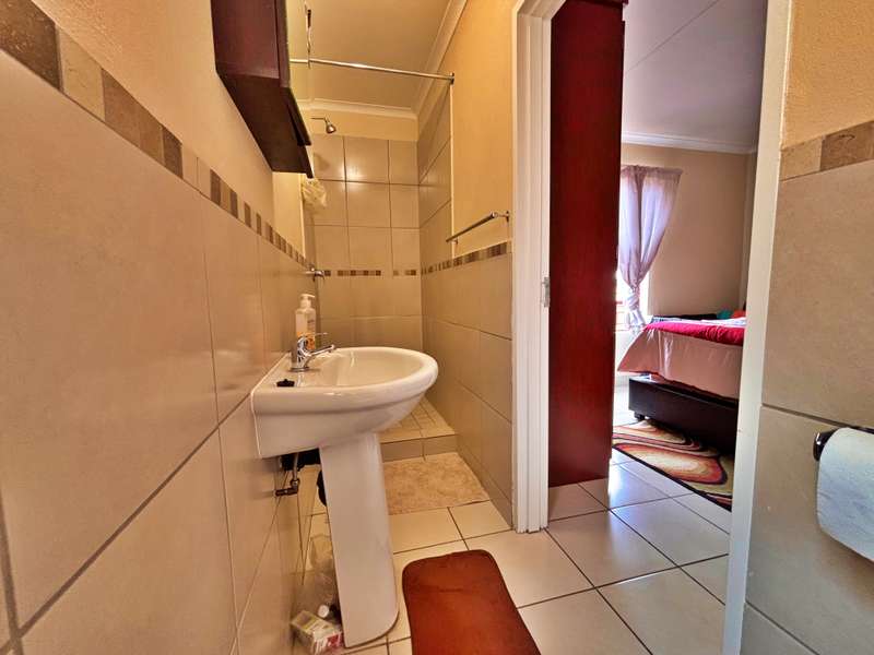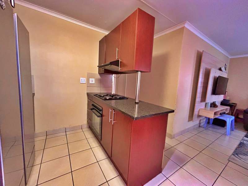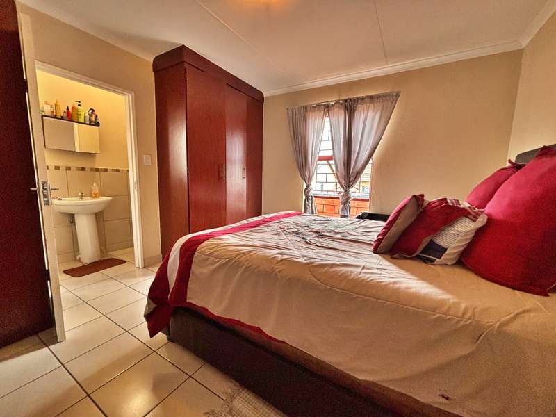 Welcome to this charming property, perfect for those seeking comfort and security. Located in a desirable neighborhood with 24-hour security, this home offers peace of mind and convenience. The property features a spacious en-suite bedroom, two additional well-sized bedrooms, and a bathroom that serves the rest of the home. The open-plan kitchen is ideal for modern living, offering plenty of space for cooking and entertaining. Just outside, you’ll find a small laundry area, perfect for keeping your home organized. The property also includes a single garage and an additional parking space, making it easy to accommodate your vehicles. Whether you're looking for a cozy home or a secure investment, this property has it all. Don't miss the opportunity to make it yours!