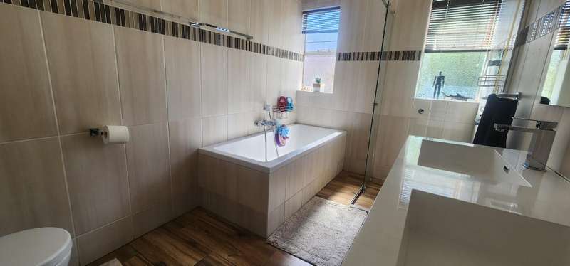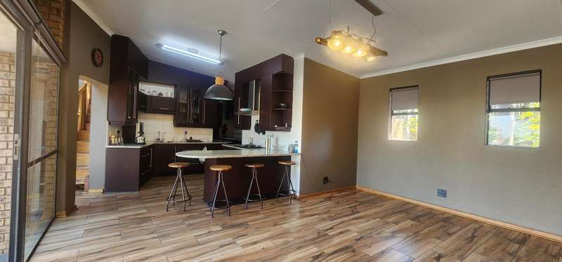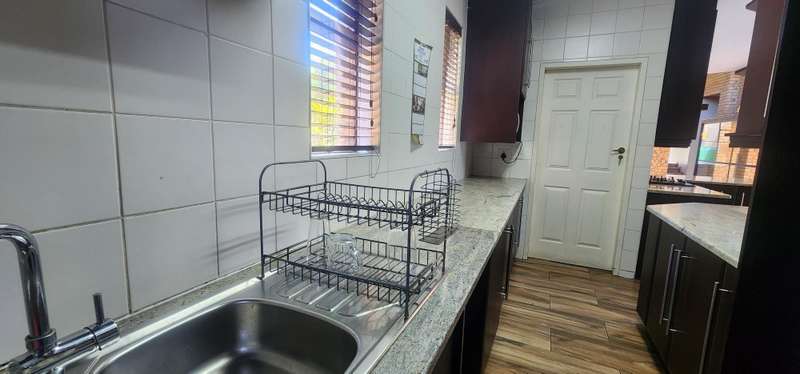 This super impressive home offers you 4 spacious sunny bedrooms. Three bathrooms and a guest toilet. A study and open plan living areas. Beautiful kitchen with a pantry. Staff quarters Sparklingly pool set in a lush garden. Four garages. Call me now to view