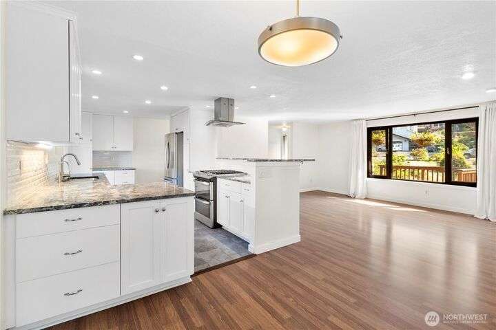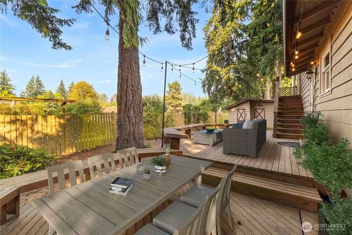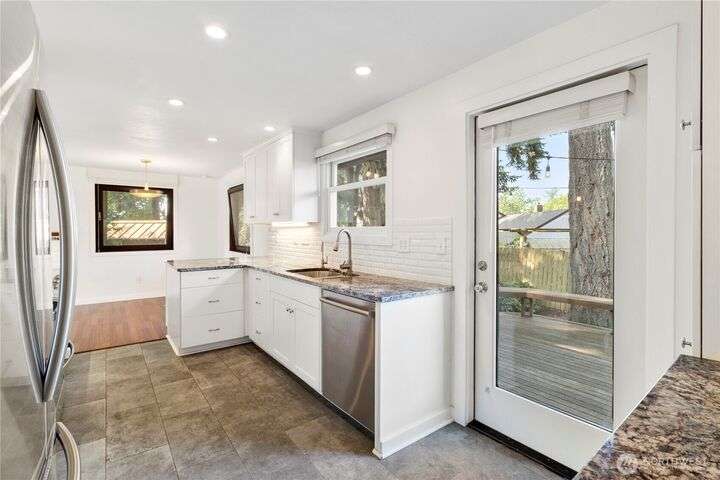 This lovely home near Whatcom Falls Park and Galbraith Mtn is an entertainer's dream! The beautiful, updated kitchen features a 2024 gas stove, soft-close cabinets, granite counters, SS appliances and open floorplan to living and dining rooms. European style windows on lower floors and engineered flooring on the main floor. Large 2nd living area has a wood stove for those chilly nights. Fully-fenced back yard has a Big Rock Garden feel, territorial view and a huge deck - perfect for summer BBQ's. A 20x40 shed has water/electricity - potting shed? workshop? or chicken coop? Front yard has a large deck for welcoming guests plus there are 2 raised beds, blueberry/raspberry bushes and an herb garden. Close to town, shopping and restaurants!