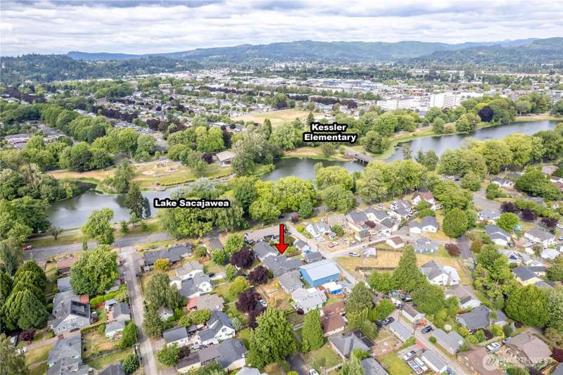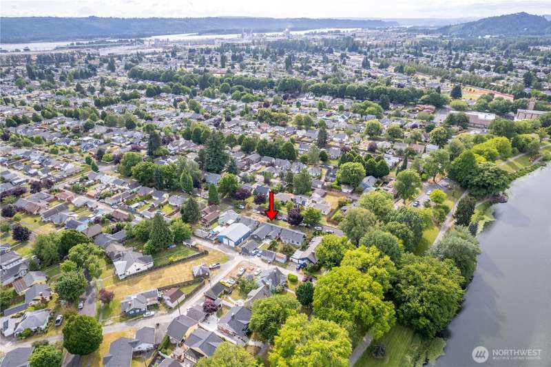 Move in Ready! 4 Bedroom, 1 bath home with views of Lake Sacajawea. New roof in 2018, New vinyl windows and trim, New Carpet in Bedrooms, Refinished hardwood flooring, New custom blinds and New forced air furnace in 2022. Spacious master with a large walk in closet. Large utility room. Multiple spaces to add another bath. Pull down attic storage. Private back yard with RV Swing Gate, Brand new fence and gates and new patio and sidewalk. Plus a one car garage with a storage room and extra paved parking for 2 full sized vehicles behind the fence. Move in and walk across the street to the Lake! Seller is offering up to $5,000 in closing costs or a rate buy down for the Buyer!