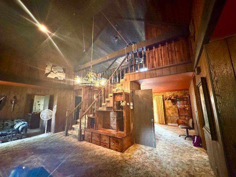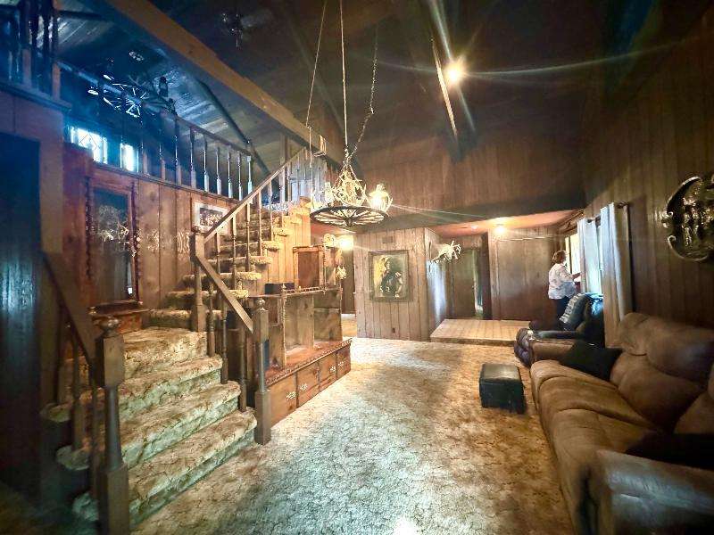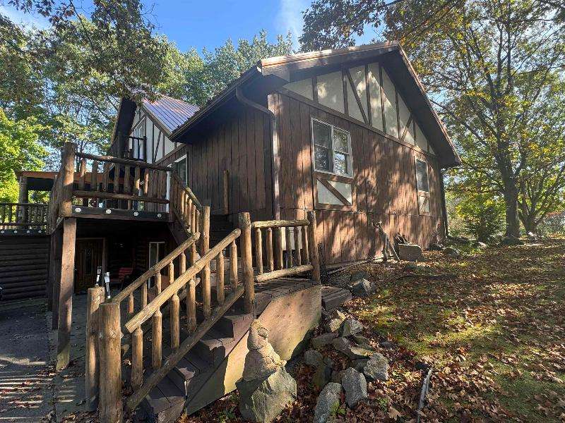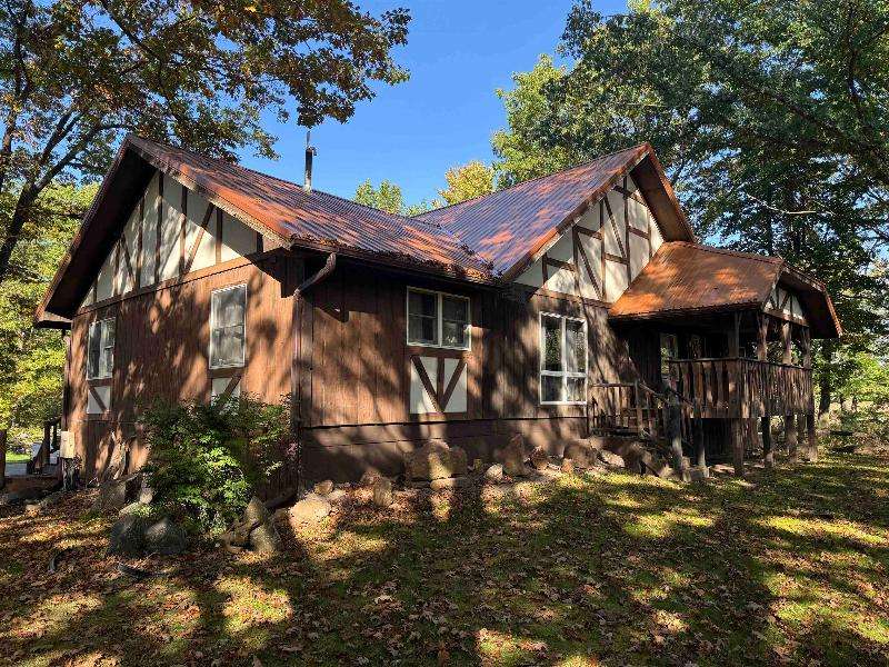 Rustic Country Retreat with versatility! Follow the winding driveway around the spacious home to the courtyard. Then take a minute to listen to the quiet and enjoy! Now, let's explore! First the house which was built in the fabulous '80's has great bones and with your touch is ready to catch up to today! Your imagination might go into overload as you travel the main hall in the lower level with a multitude of rooms including an outside entrance office space, 1/2 bath and a barroom where you can almost hear the pool balls clacking on the pool table that stays by the way! The main floor boasts a towering, vaulted ceiling and as you look upward you'll see the inviting loft that's just perfect for a reading or puzzle and games room or maybe just relaxing and enjoying the sights and sounds of peaceful living. Also on the main floor are 3 bedrooms, living and dining rooms, eat in kitchen, laundry and 2 baths. There's even more to enjoy outside with a deck that spans the back including a great screen room. Up front is a cozy covered porch and don't miss the loft balcony. Just a short walk away from the house are two generous sized buildings. Through the rustic front entry of the first building, you'll find offices, a bathroom, a massive two-story storage room with overhead entry door. The second floor may make the perfect spot for a studio or an apartment. This building is completely insulated has water and electricity. The second building is vast with a full second floor, 3 overhead doors, concrete first floor, water and electricity. Just the spot for your business, equipment, rental storage space or most important...your toys! Take a walk and you'll see a path just between the buildings that seems to beckon you, go ahead and follow it through the grassy open area that would be great for your critters or garden. Just ahead you'll find yourself under the tall trees in one of the most beautiful spots of the place, the gently flowing creek that follows the East and North property line. When you're ready to come see it for yourselves, give me a call or text and let's enjoy some country time!
