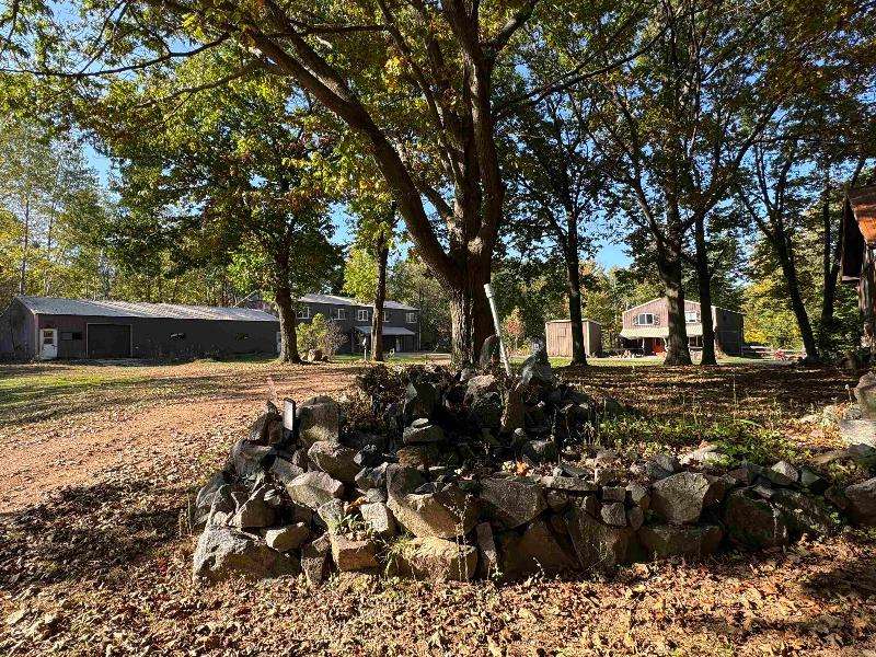You don't want to miss this incredible one of a kind of opportunity, ! Passing through the gates the winding paved drive will bring you to the courtyard featuring two very impressive large buildings and the spacious unique home. All of this sits on 4+ tranquil acres with a creek meandering through. You'll enjoy the beautiful views from several outdoor venues, including decks, covered porch and screened rooms. As mentioned, this is a very unique home having only had one owner who designed and built it. Once you see it, you'll be excited to bring your own imagination and ideas.! Bountiful storage, multiple rooms, an office, main floor laundry, three bedrooms, two bathrooms plus a large inviting bar room and steel roof. The buildings you saw as you drove in are very impressive in size. The smaller one (approximately 30 x 75)is insulated, with both water and electricity. This one features several rooms, bathroom, and a massive garage area with large overhead door. In addition, there is a second floor which could be converted to an apartment for extra income. The second building (approximately 30x130') may be perfect for your business or whatever your dreams are. This building also has electricity, water and three overhead doors. Location can't be beat! Central to Marshfield, WI Rapids & Steven's Point. This is a property that cannot be appreciated without seeing in person. Seller is offering this property as is so bring your imagination and come take a look for yourself!!