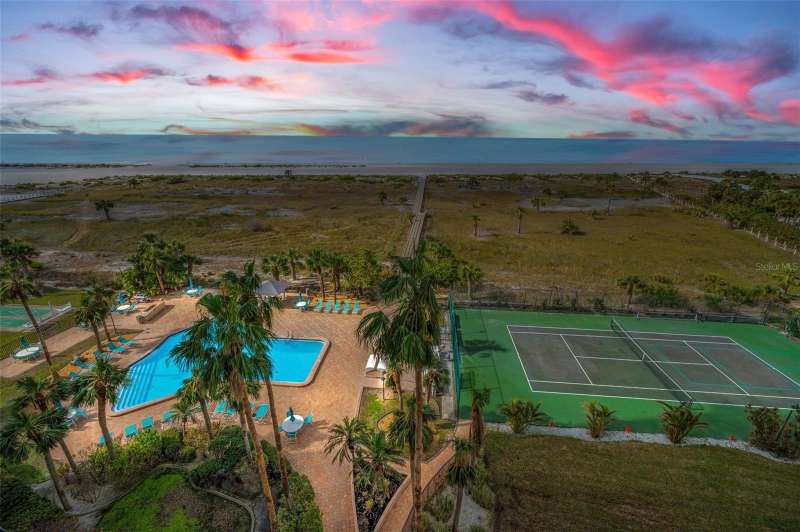 Presenting Landmark Towers Furnished Studio Beach Front Residence # 805 Situated on Pristine Sand Key. Light and bright 8th floor Studio furnished residence offering full panoramic gulf views and private beach access. Panoramic Gulf Views and fabulous Nightly Sunsets! Updated interior features kitchen with granite surfaces, breakfast bar and White appliances; open great room with terrace access escape. Studio offers innovative space saving Murphy bed with generous closet space. Your own under building reserved parking space. Landmark Towers offering amenities including gated entry, on-site management, gulf-front heated pool for the avid sun worshipper, hot tub, tennis and pickleball court, shuffleboard, social room with attentiveness to the surrounding setting of tropical landscaping. Conveniently located to acclaimed restaurants, shopping, attractions and trolley service. Lease terms subject to availability. Minimum rental period of 3 months