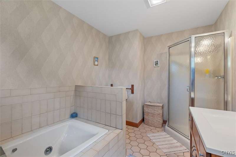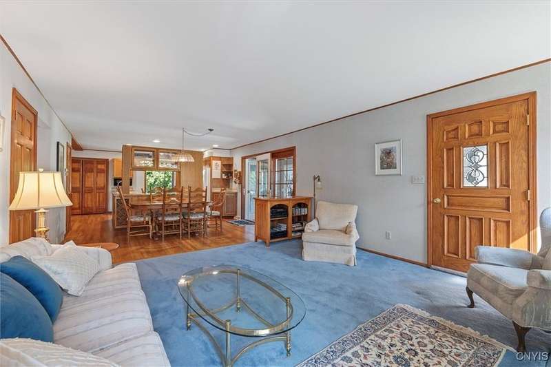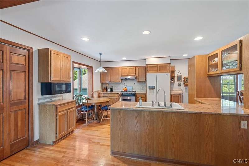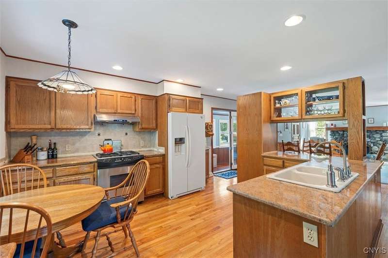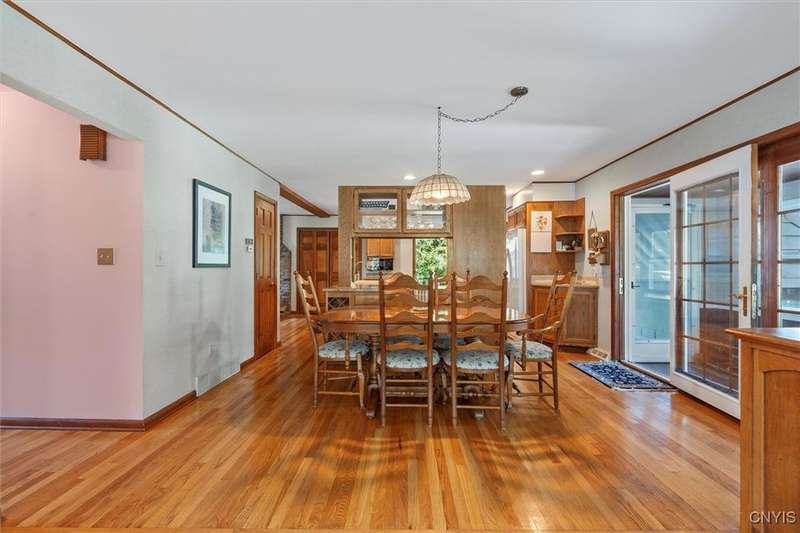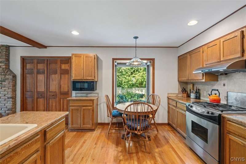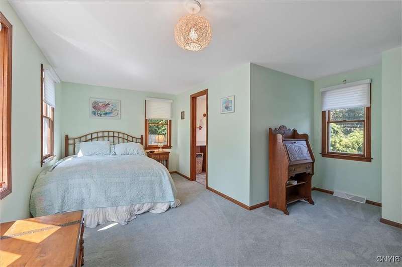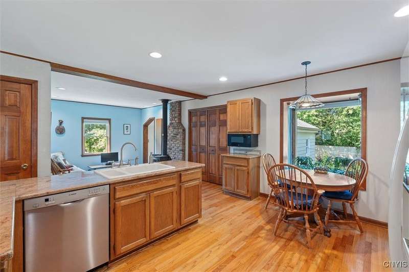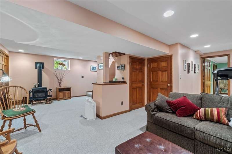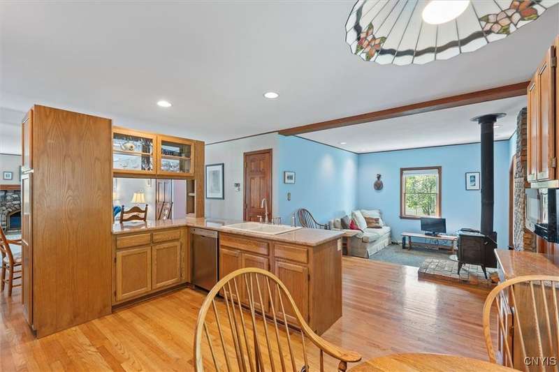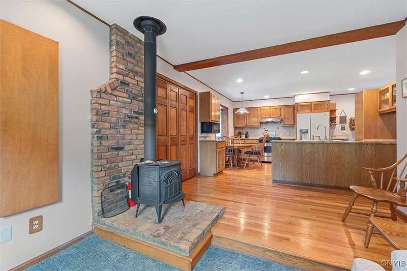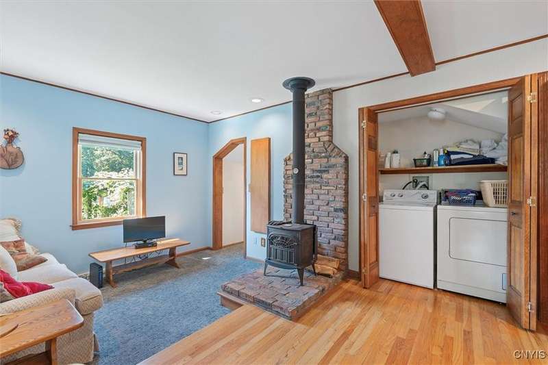 Step into a home where timeless character meets modern comfort?lovingly rebuilt to offer the best of both worlds. Originally built in 1940, this 2,775 sq ft home was artfully rebuilt in 1987 on its original foundation, blending classic charm with thoughtful updates. The first floor offers two bedrooms, including a spacious back bedroom originally designed as an in-law suite with a private bath featuring radiant heated floors. Additional highlights include a Kohler spa tub, Vermont Castings wood stove, and a stunning stone hearth crafted from locally sourced fieldstone. The finished basement offers an office, fitness area, natural gas fireplace, wine fridge, and matching refrigerator. Central air, remote-controlled skylights, updated kitchen counters and tile, plus a whole-house fan complete the package. The property is beautifully landscaped with flowers, shrubs, trees, and even a small garden. A one-of-a-kind home with a rich story?ready for its next chapter with you.All of this conveniently located in the heart of Dewitt next to everything.This property is not in a flood plain. Zillow shows it is but it's not.