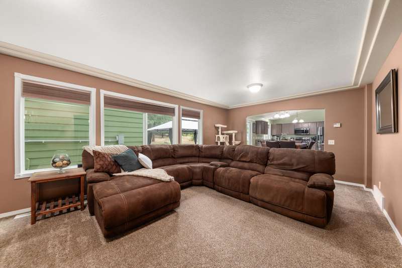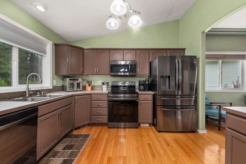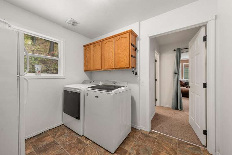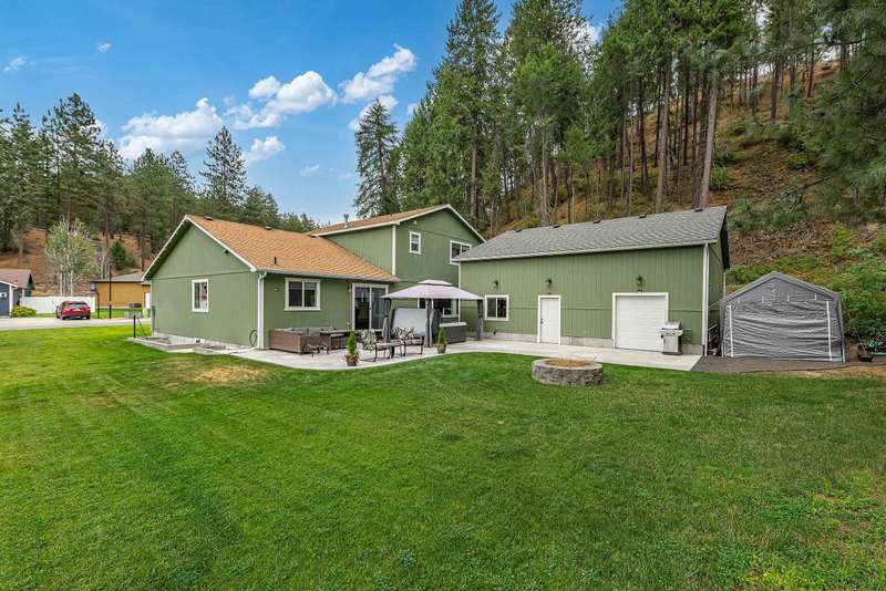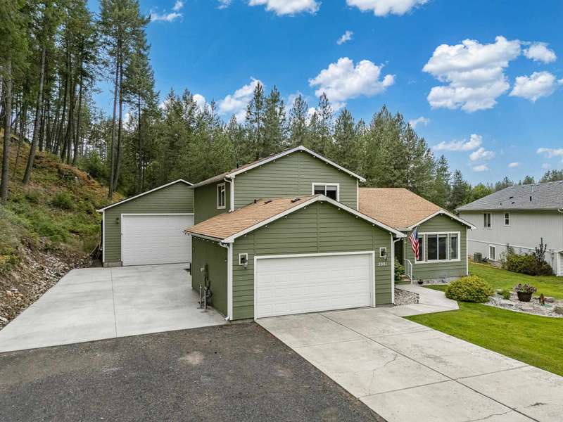 Looking for multi-generational living or rental income opportunity and a spacious 34x36 shop? This is it! This beautifully maintained 6-bedroom, 4-bath home offers 3,630sq. ft. of living space, featuring two generous family rooms with newer carpet throughout, gas fireplace, large open kitchen w/hardwood flooring, newer stainless-steel appliances and a main floor bedroom ideal for guests. Upstairs you will find the primary suite w/walk in closet, full bath, 2 add'l bedrooms and a full bath. The lower level offers private living space with separate entrance, full kitchen, laundry, 2 bedrooms, and a full bath, perfect for passive income or in-law suite. The impressive 34x36 heated shop is fully insulated and drywalled, with 12’x18’ automatic door and side pass-through, providing ample space for tools, toys, or recreational vehicles. Located in the gated community of Blackstone in Nine Mile Falls. Access to community clubhouse and indoor pool! Class A Membership to Suncrest Park. Must Apply Early, Not Guaranteed!
