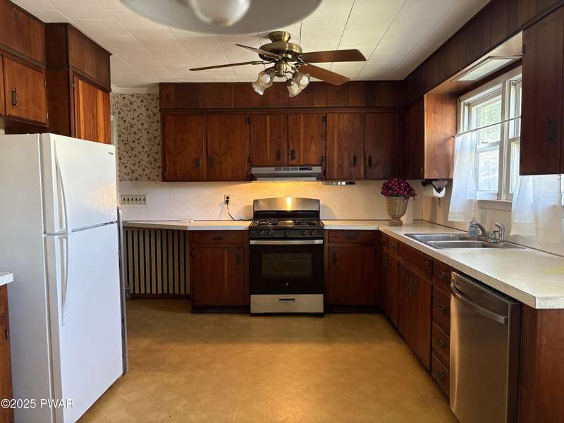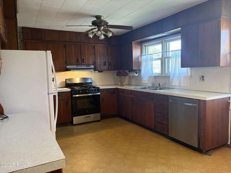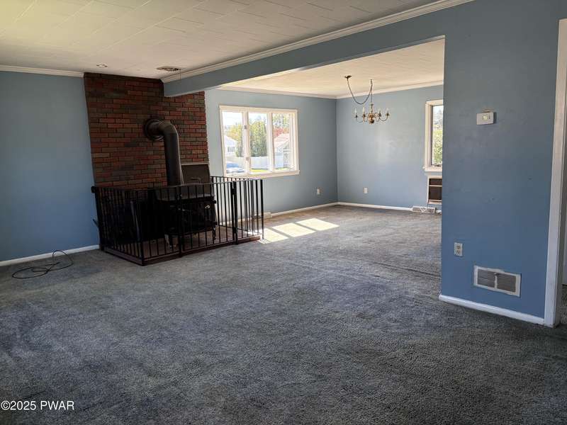 This wonderful in town home has 3 Bedrooms, 2 baths, with one of the bedrooms and one bath on the main floor. This special home has new appliances in the spacious kitchen. The living room/dining area has a wood stove. There is also a finished family room in the basement. This home comes with an attached garage with a breezeway and a covered patio and this is all on a double lot.