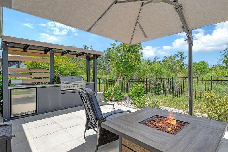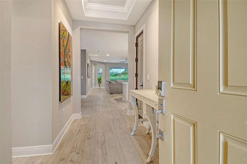 Stunning Coastal-Inspired Retreat in Gated Community! Welcome to this beautifully designed 3-bedroom, 3-bath home with spacious den/office, where style, comfort, and thoughtful upgrades come together in perfect harmony. From the moment you arrive, you’ll be impressed by the tile roof, lush landscaping, and paved driveway leading to a spacious 3-car garage with epoxy floors. Inside, the open floor plan is perfect for entertaining, featuring coastal-cozy colors, luxury vinyl plank flooring, and over-the-top designer lighting throughout. The light and bright kitchen shines with a fabulous pantry and flows effortlessly into the main living areas. The upgraded A/C system ensures year-round comfort. The primary suite is a peaceful escape with a fireplace, amazing walk-in closet, and tranquil preserve views. One of the additional bedrooms features a private en-suite bath and walk-in closet, making it perfect for guests or extended family. A large laundry room, keyless entry, and hurricane shutters add everyday ease. Wine lovers will appreciate the newly built, climate-conscious wine cellar, a unique and elegant addition for entertaining and storage. Step outside to your expansive private outdoor lanai area designed to enjoy a true-Florida lifestyle, with an outdoor kitchen featuring a built-in gas grill and refrigerator with a private putting green, and a fenced, open yard—all designed to enjoy Florida’s gorgeous sunsets in comfort and style. Perfectly located near shopping, dining, world-class beaches, and downtown Sarasota, this one-owner home is part of a gated community with excellent amenities and low HOA fees. This exceptional property truly has it all—luxury, location, and lifestyle. Don’t miss your chance to call it home!