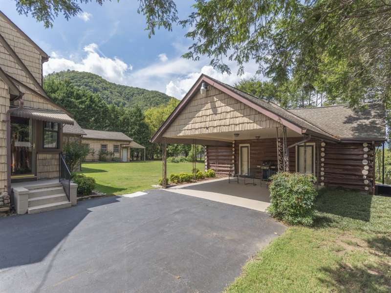 Perched above Hot Springs, this 4BR, 3BA home offers sweeping mountain views and endless potential. A historic log guest cabin and a spacious 24' x 36' shop/RV garage make it ideal for a retreat or income producing rental. Short-term rentals allowed, and the ADU adds even more opportunity. Set on a double lot, the home features a generous living area with craftsman wormy chestnut woodwork, two fireplaces, and a main-level primary suite with a covered porch. Just moments from downtown Hot Springs, where the community has made incredible progress rebuilding, and many beloved small businesses have reopened. Enjoy easy access to the Appalachian Trail, hot spring mineral baths, whitewater adventures, and endless outdoor recreation. Asheville is within reach, making this a rare opportunity.