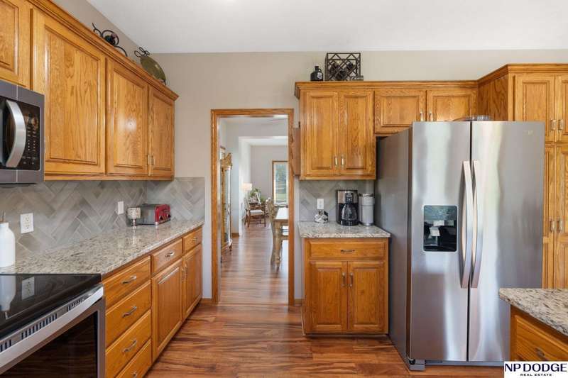 Available for the first time is this exceptional home on a .4-acre tastefully landscaped lot, with a large portion of it fully fenced. Prime location within walking distance to the neighborhood park, elementary school, middle school, and Standing Bear Lake! Plus this home is located in the new Westview High School zone. Interior highlights include generously sized bedrooms, each with a walk-in closet, updated kitchen with modern countertops, backsplash, and appliances, and convenient main floor laundry. The oversized two-car garage offers a walk-up attic for additional storage and direct access to the backyard. The fully finished basement is equipped with a wet bar, game areas, a rough-in for shower plumbing and includes a water softener. A rare opportunity combining space, updates, and an outstanding location. AMA.
