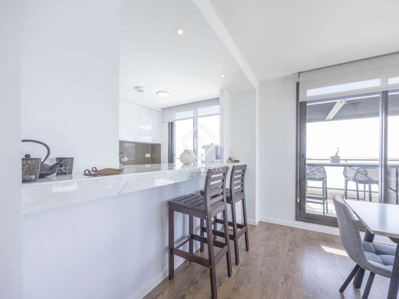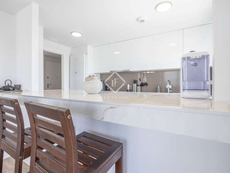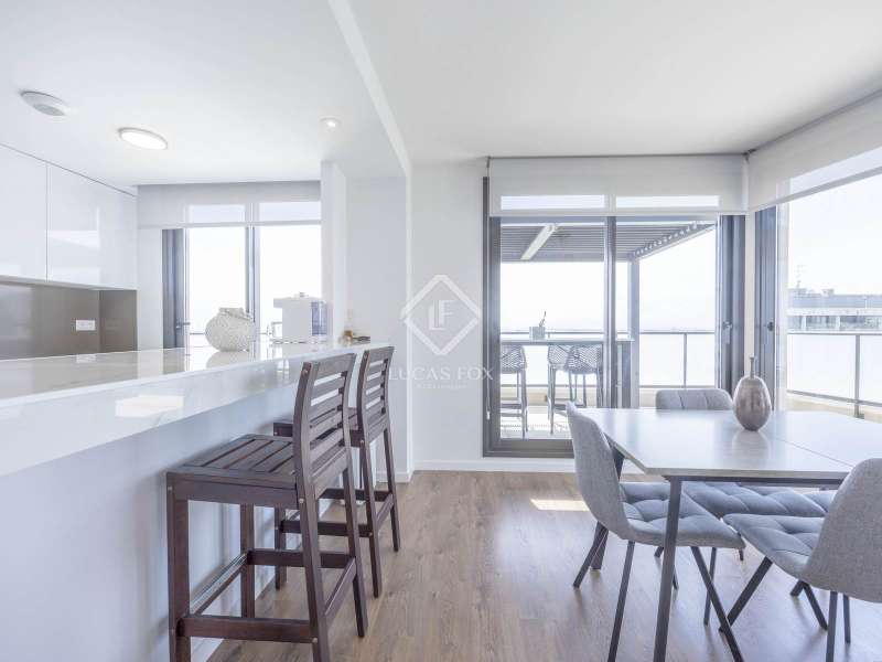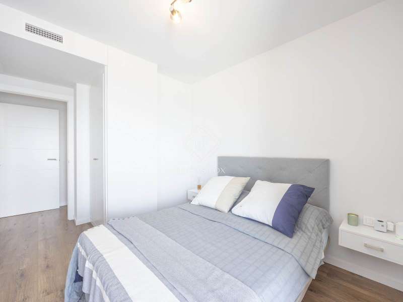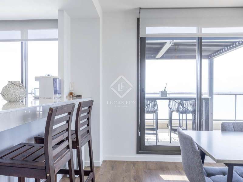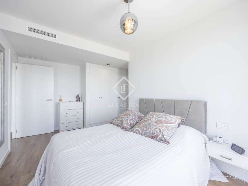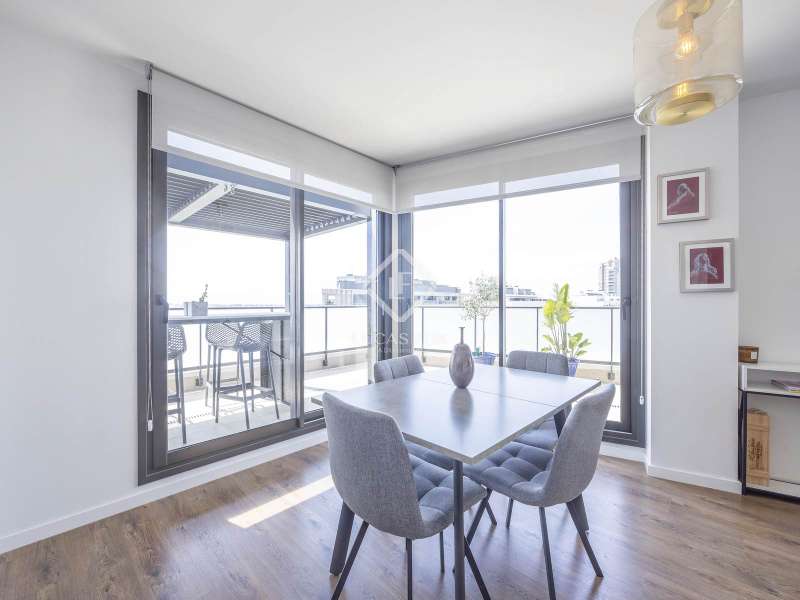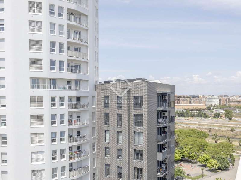Lucas Fox presents this spectacular luxury corner penthouse, built in 2023, with a privileged southerly aspect that allows for year-round natural light. It is located in the new Las Moreras neighbourhood , the most sought-after area in Valencia, just minutes from the marina and the City of Arts and Sciences. This exceptional property comes fully furnished and includes a parking space and a storage room. Its private terraces, totaling 70 m², offer ample space for creating separate areas , such as a barbecue area, a practical storage room , and several pergolas with stunning sea and mountain views. The interior features a living-dining room seamlessly integrated with an open kitchen, two comfortable double bedroom , a full bathroom with a bathtub, and the main bedroom. Each room opens directly onto the terrace. The residential area where the property is located features a swimming pool, a garden with a children's area, and a social club. Contact us for more information or to arrange a personalized visit.