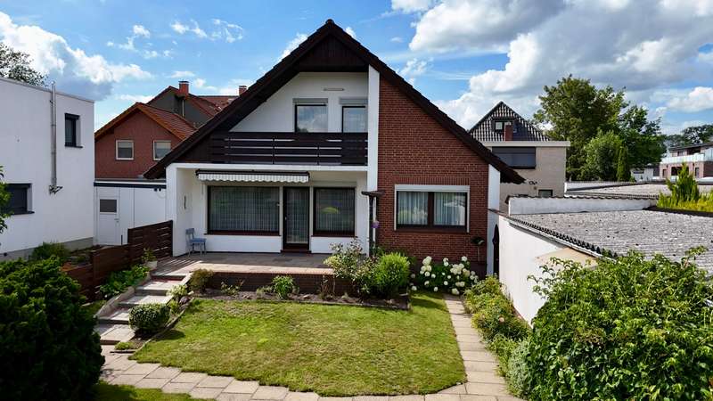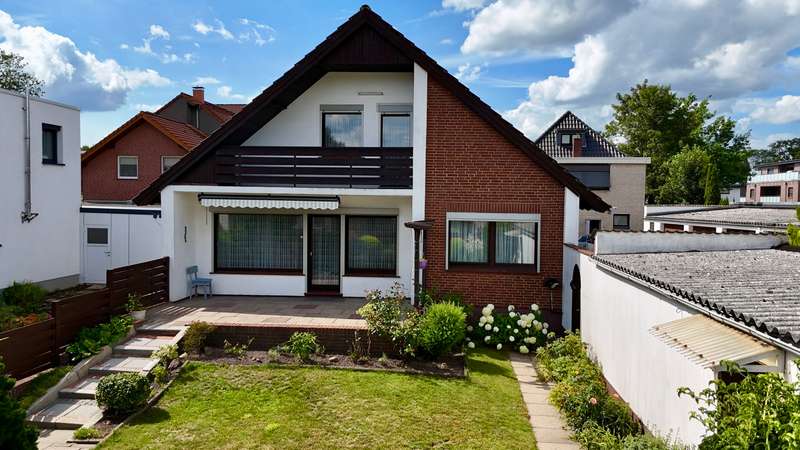 The detached house offered here was built in 1969 in solid construction and is located in Delmenhorst. The property stands on a 653 m² plot and offers a living space of approx. 127 m². The house is particularly suitable for families or couples looking for a solid residential property with a practical floor plan and a manageable garden. On the first floor there is a spacious living room with access to the terrace and garden, a kitchen, a shower room and a separate laundry room. The layout is functional and suitable for everyday use. The upper floor offers additional rooms for use as bedrooms, studies or guest rooms. A storage room on the upper floor provides additional storage space. The house has a partial basement and a heating system from 2011. The windows are double-glazed wooden windows. The electrics are still available in a two-wire version. These features offer potential buyers the opportunity to modernize the property according to their own ideas if required. The house includes a garage, a shed and a small workshop ideal for craft hobbies or as additional storage space. The garden is easy to maintain and offers plenty of space for leisure and relaxation. The terrace can be accessed via the living room and is ideal for cozy hours outdoors. A balcony on the upper floor completes the outdoor space.
