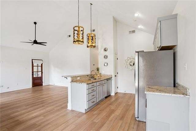 Charming updated home in Old Metairie with high ceilings, updated flooring, and a renovated kitchen featuring granite counters, pantry, and gas range. Large windows with plantation shutters. Primary suite includes a tray ceiling, en-suite bath, and walk-in closet. Two additional bedrooms, laundry room with washer, dryer, sink, and storage. Outdoor shed, side covered patio, and driveway parking for 2+ cars. EV/Tesla charging station available. No pets. Tenant responsible for all utilities, cable/internet, and lawn care. Available now!