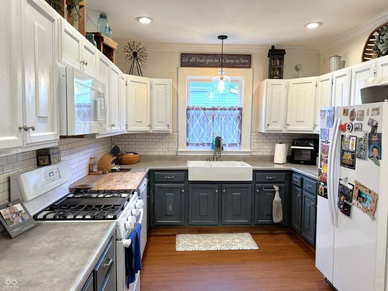 Welcome home to this charming 3 bedroom, 2 bath property ideally located on a corner lot within walking distance of downtown Crawfordsville and in the Crawfordsville School District. Step inside to find an updated kitchen complete with all appliances-including the washer and dryer-ready for you to move right in. The home offers generous living spaces, including a large dining area, cozy family room, and inviting living room, all accented by beautiful hardwood floors throughout. Enjoy the outdoors in your fully fenced backyard featuring a brand-new open patio, perfect for relaxing or entertaining in privacy. The covered front porch adds even more curb appeal and a great spot to unwind. Additional updates include a newer HVAC system, offering peace of mind and comfort year-round. Don't miss your chance to call this beautifully maintained downtown home yours!
