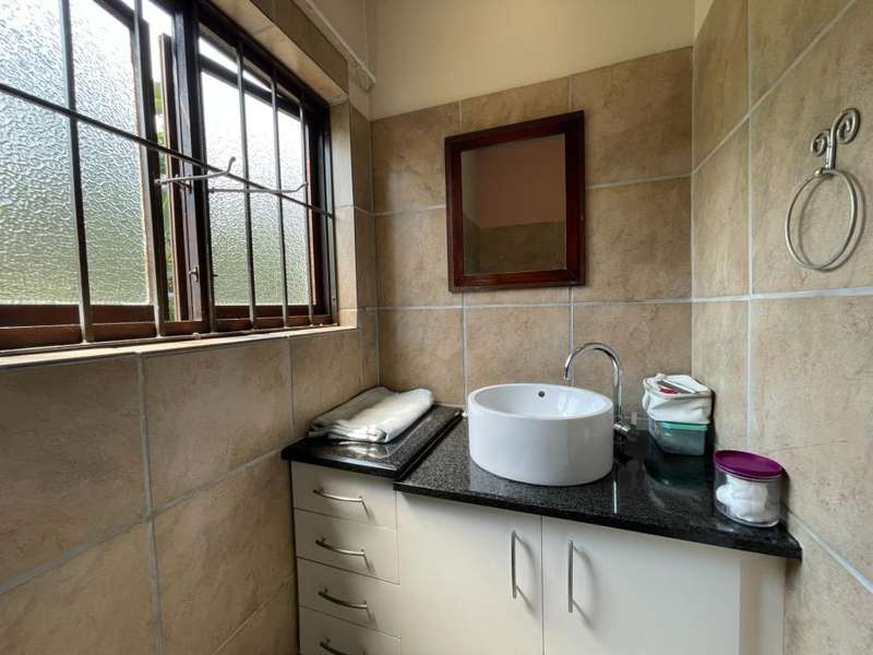 This gorgeous home is situated in a well established residential and coastline area. It is within walking distance to Southbroom and Ramsgate main swimming beach . Popularly named the Ramblers Walk with safe and scenic walkways along the beach. Access to the beach is merely a 2 to 3 minutes walk that is approximately 200 meters away. The home itself is beautiful from the inside and out, well maintained with a spacious yard and a lovely floor plan boasting good features. There is a back up water supply system, inverter for load shedding which can be handy. A solar geyser with solar panels which is currently set up and additional panels can be installed to the existing system if need be. Consisting of three generous sized bedrooms, three bathrooms, one of which is an en-suite bathroom, an open planned lounge which leads onto the under cover patio with a braai area and an open deck with lovely distance seaviews. Their is a large room on the lower level which can be used for as an entertainment room or an additional bedroom which has it?ÇÖs own entrance and a covered patio which forms part of the upper level deck. This can also be used as a covered parking for two vehicles. The swimming pool is easy to maintain with chemical free e-clear system and can be accessed from the deck and the entertainment room in the front yard. There is a spacious double automated garage and additional parking in the back yard. The property extends onto to streets therefore there are two driveways for this lovely home. Call me today to view this exclusive offer.