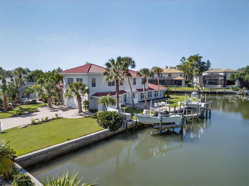 Boater’s Dream on Siesta Key! Experience the ultimate waterfront lifestyle in this beautifully renovated Siesta Key home, offering an extraordinary 268 feet of waterfront and immediate access to the Intracoastal Waterway. No bridges to the bay. This is truly a boater’s paradise, complete with a private dock featuring two lifts, perfect for accommodating your vessels and exploring the surrounding waters, from a quick cruise to Skiers Island for water sports, to sunset sails on the Gulf of Mexico. Recently and thoughtfully renovated, this stunning coastal residence perfectly blends timeless design with modern luxury. Boasting five spacious bedrooms, four and a half bathrooms, and 4,201 square feet of refined living space, it offers the ideal setting for relaxed everyday living and effortless entertaining. All within a home designed to complement today’s vibrant family lifestyle. Step inside to discover a light-filled, open floor plan framed by tranquil water views. New flooring and stylish fixtures create a crisp, inviting ambiance. The kitchen blends form and function with stainless steel appliances, custom cabinetry, quartz countertops, and a spacious island ideal for gathering with family and friends. The primary suite is a serene retreat featuring a spa-inspired bath and direct access to the pool terrace. Outdoor living shines with multiple spaces for lounging and dining beside the pool or enjoying the expansive waterfront lawn. Located on the north end of Siesta Key, just minutes off the island via the North Bridge and close to Siesta Key Village and the island’s world-famous white-sand beach. This property combines the best of island living and boating convenience, all in one exceptional address.