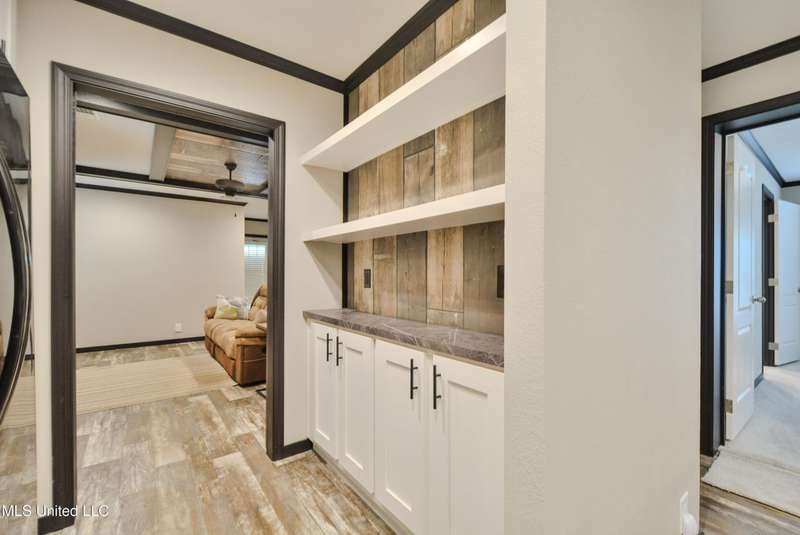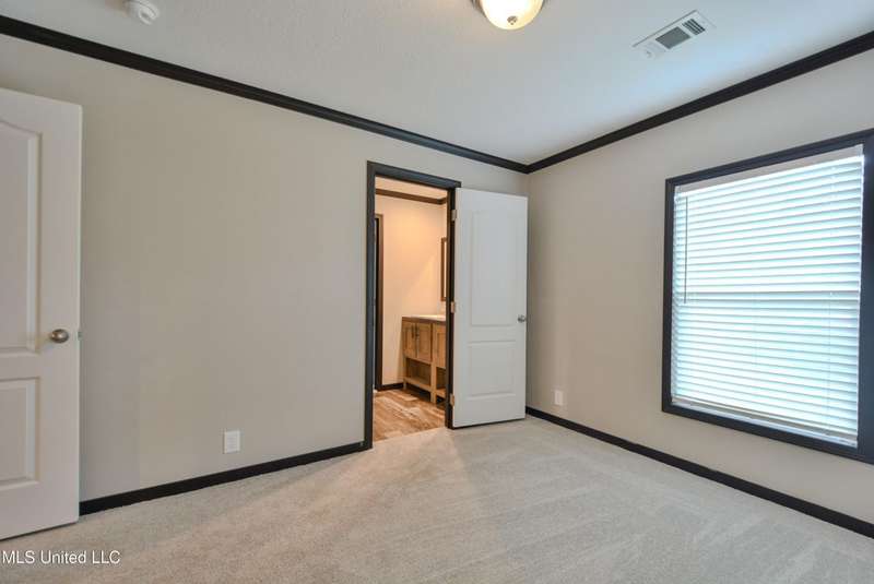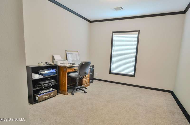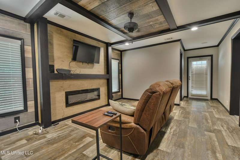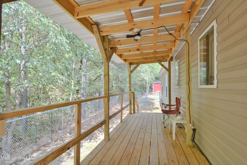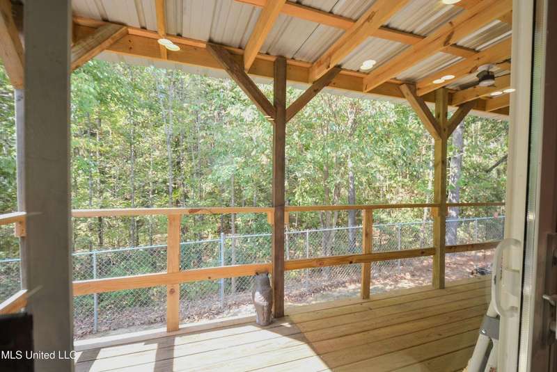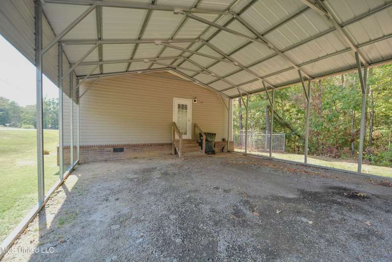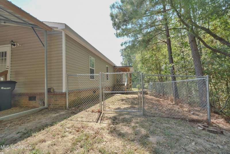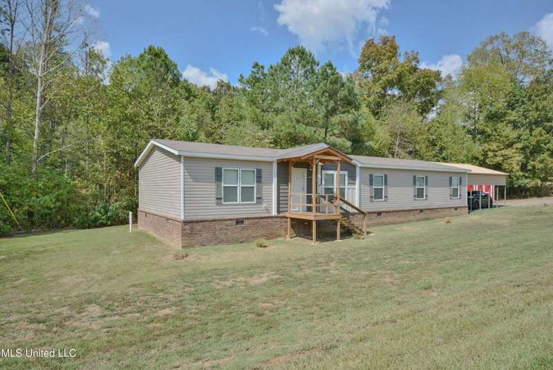 Welcome to this beautiful four-bedroom, three-bath home in the peaceful Creekwood Subdivision of Byhalia. Built in 2021 and set on a serene 1.2-acre pie-shaped lot backing to woods, this well-maintained home offers a perfect blend of comfort and style. The spacious den features wood-accented walls, a ceiling fan, and an electric fireplace, while the living room provides additional space for relaxing or entertaining. The large kitchen boasts stainless appliances, abundant cabinets and counter space, a wood backsplash, smooth cooktop stove, and the stainless refrigerator remains. A charming coffee bar area, open-shelf pantry with cabinets, and a breakfast area add to the functionality. The primary suite includes a large walk-in closet and a luxurious bath with double sinks, soaking tub with towel shelving, and a separate tiled shower. Bedrooms two and three share a Jack-and-Jill bath, with an additional full bath located near bedroom four and the side entry. Interior details include recessed lighting, wood beamed ceilings, luxury vinyl flooring, carpet in bedrooms, and ceiling fans in the primary bedroom, living room, and den. Outside, enjoy the covered front entry, covered rear deck overlooking the woods, and a fenced area behind the home. Extras include a two-car carport, 8x12 red storage building (only four years old), laundry room with cabinets, and two Arlo Essential wireless security cameras. Located just 15 miles from Collierville and 12 miles from Olive Branch, this property offers peaceful country living with convenient access to town.