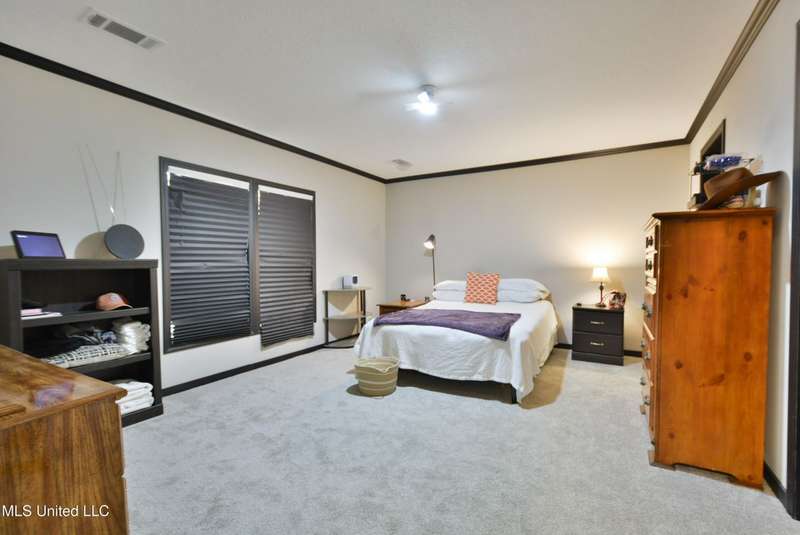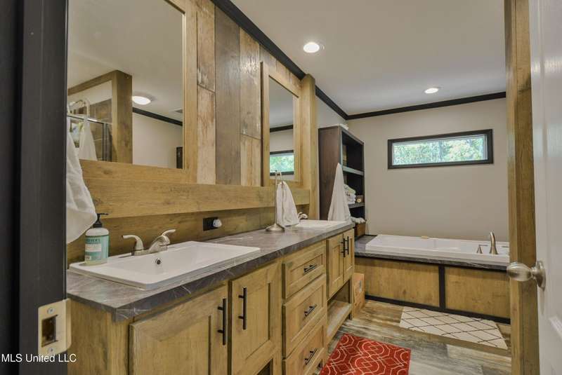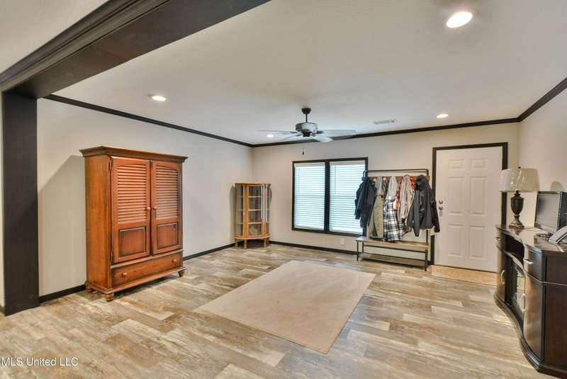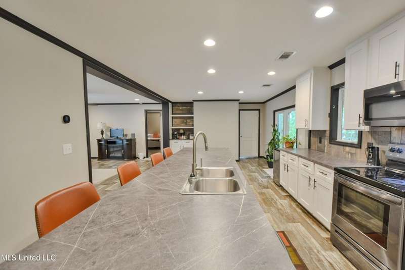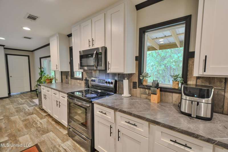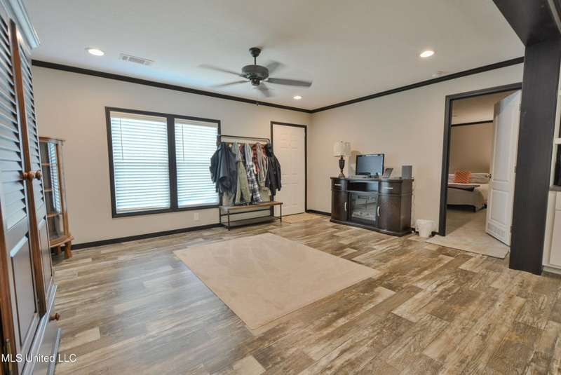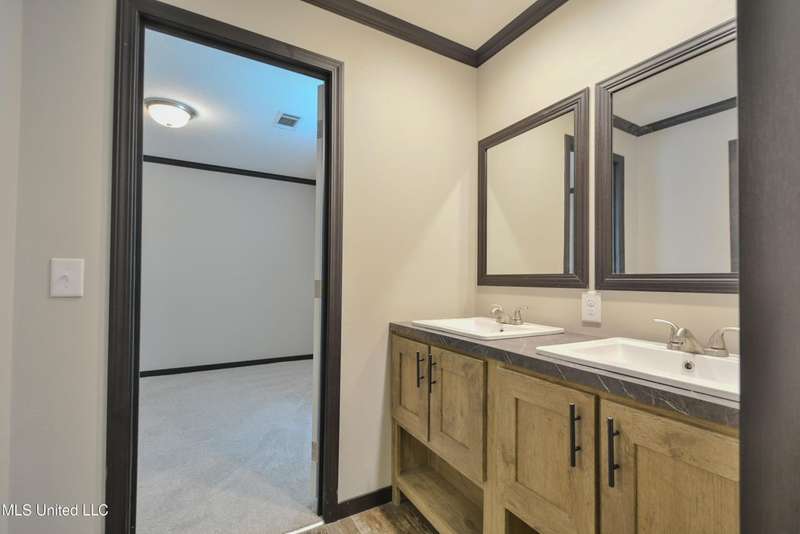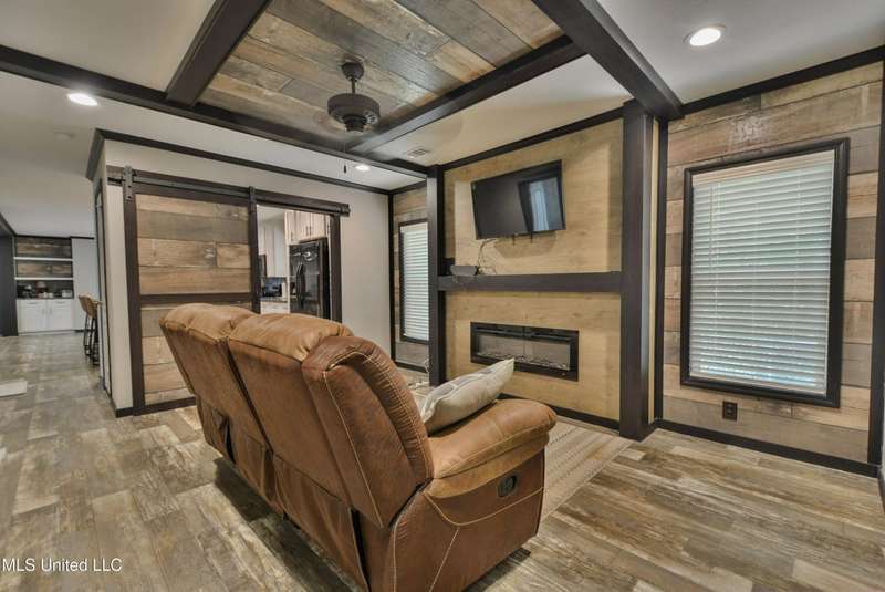 Welcome to this beautiful four-bedroom, three-bath home in the peaceful Creekwood Subdivision of Byhalia. Built in 2021 and set on a serene 1.2-acre pie-shaped lot backing to woods, this well-maintained home offers a perfect blend of comfort and style. The spacious den features wood-accented walls, a ceiling fan, and an electric fireplace, while the living room provides additional space for relaxing or entertaining. The large kitchen boasts stainless appliances, abundant cabinets and counter space, a wood backsplash, smooth cooktop stove, and the stainless refrigerator remains. A charming coffee bar area, open-shelf pantry with cabinets, and a breakfast area add to the functionality. The primary suite includes a large walk-in closet and a luxurious bath with double sinks, soaking tub with towel shelving, and a separate tiled shower. Bedrooms two and three share a Jack-and-Jill bath, with an additional full bath located near bedroom four and the side entry. Interior details include recessed lighting, wood beamed ceilings, luxury vinyl flooring, carpet in bedrooms, and ceiling fans in the primary bedroom, living room, and den. Outside, enjoy the covered front entry, covered rear deck overlooking the woods, and a fenced area behind the home. Extras include a two-car carport, 8x12 red storage building (only four years old), laundry room with cabinets, and two Arlo Essential wireless security cameras. Located just 15 miles from Collierville and 12 miles from Olive Branch, this property offers peaceful country living with convenient access to town.