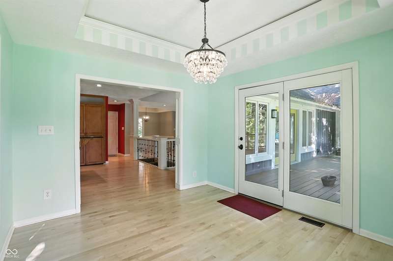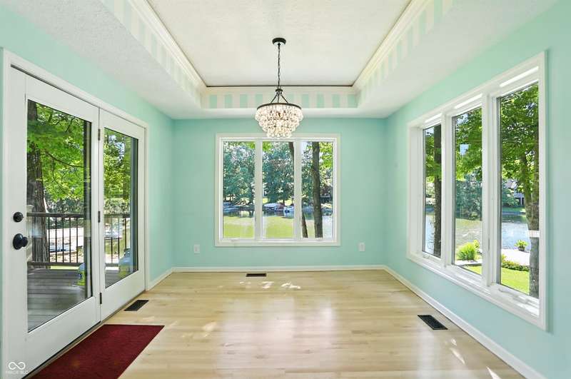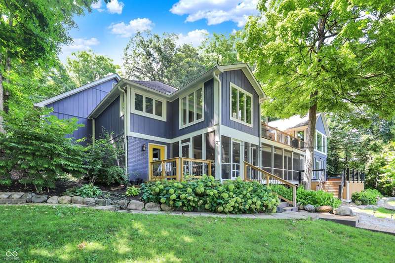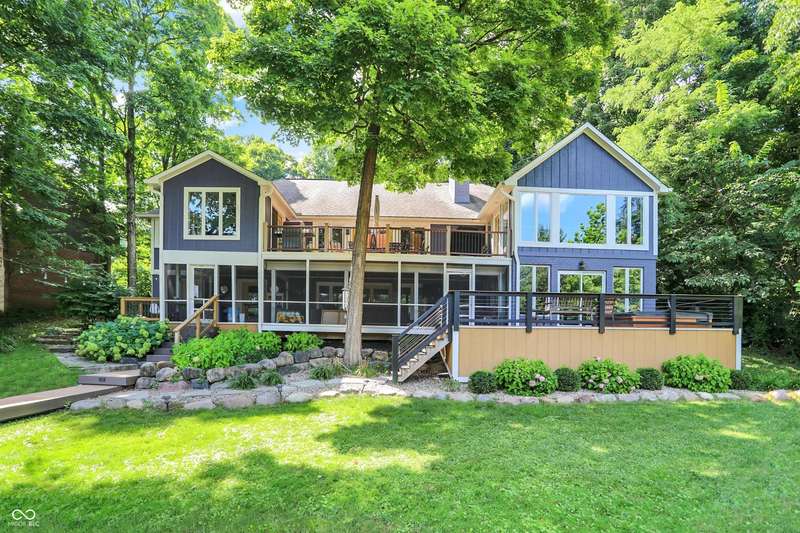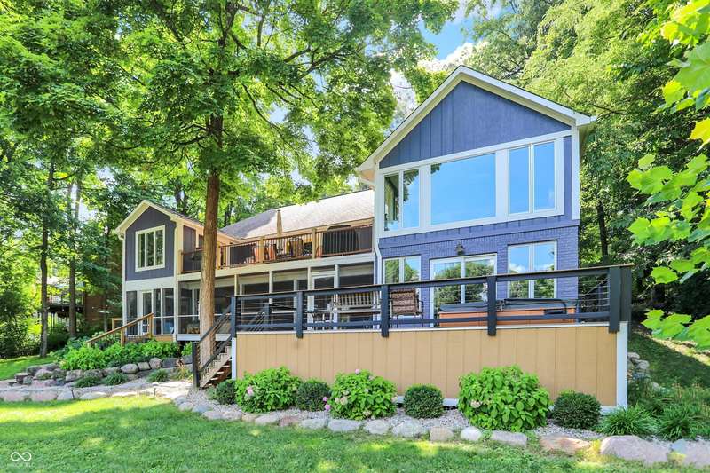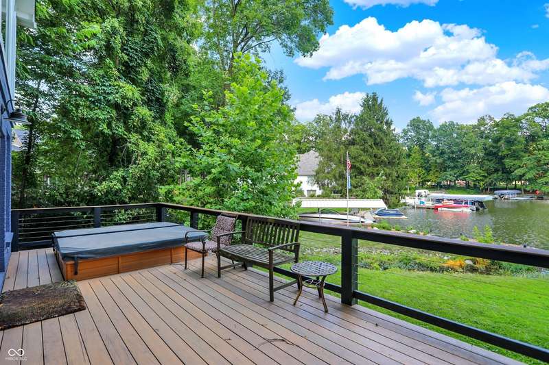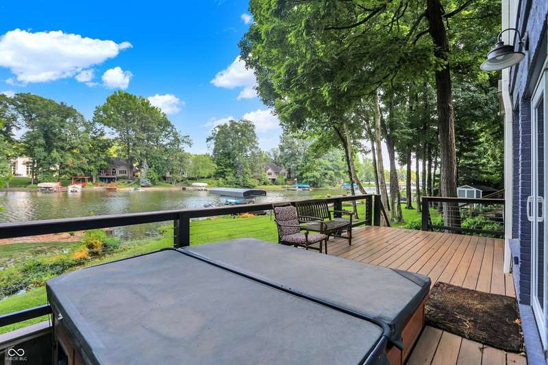 Masthead Waterfront Paradise - Where Every Day Feels Like a Getaway. Wake up to the shimmer of the reservoir right outside your window, coffee in hand, as the gentle call of waterfowl drifts through the morning air. Hard to find 139' of shoreline! This 4-bedroom, 3-bath treasure in the sought-after Masthead community turns that vision into your daily reality, with a main-floor primary suite, private home office, and an airy, light-filled floorplan that frames the water from the moment you step inside. The kitchen flows seamlessly into the breakfast room and living spaces, where walls of windows turn nature into your ever-changing backdrop. Step outside and the lifestyle expands-a Trex upper deck perfect for soaking in the morning sun, a shaded lower deck for lazy afternoons, and a screened-in porch spacious enough to gather friends and family for cozy, rainy-day conversations. From the walk-out basement, follow the path to your backyard retreat, where a bubbling hot tub invites starlit soaks and a large deck at the water's edge sets the stage for dockside dinners, laughter-filled evenings, and sunset watching that never gets old. Life in this quiet cove offers the best of all four seasons-summer boating, sunrise paddleboarding, and kayaking right from your backyard; crisp autumn mornings with golden reflections on the water; and in winter, a sparkling wonderland perfect for skating. Whether you're entertaining a crowd or savoring peaceful moments alone, every day feels like a vacation here. Recent updates ensure comfort and peace of mind, including refinished wood floors (2024), a new shed and exterior paint (2019), HVAC system (2021), tankless water heater (2020), hot tub addition, sprinkler system (2022), engineered hardwood flooring in the lower level (2020), and more. An encapsulated crawl space with dehumidifier, epoxied garage floors, and lush landscaping complete this exceptional lakefront offering.