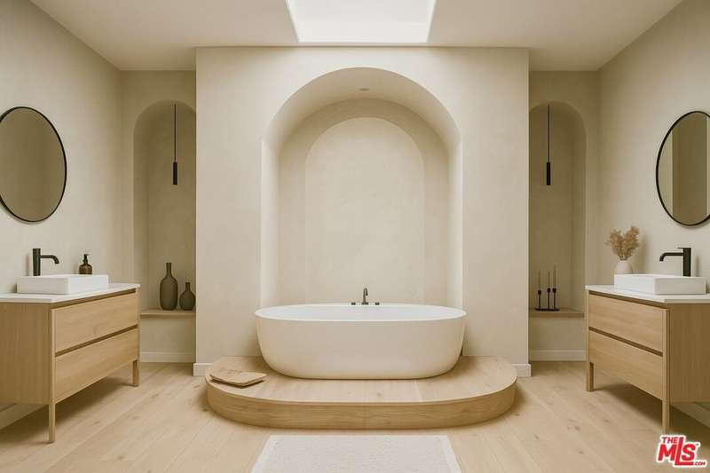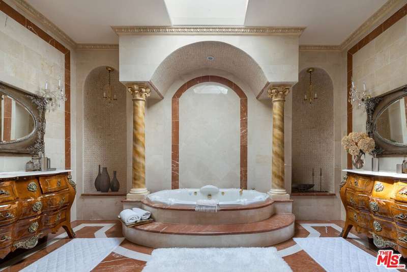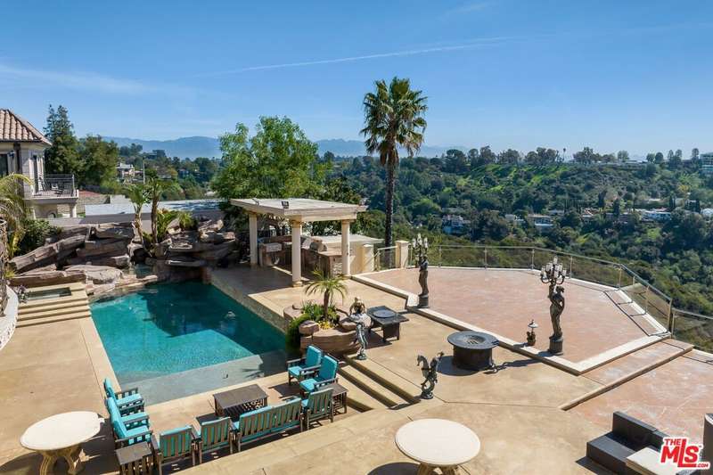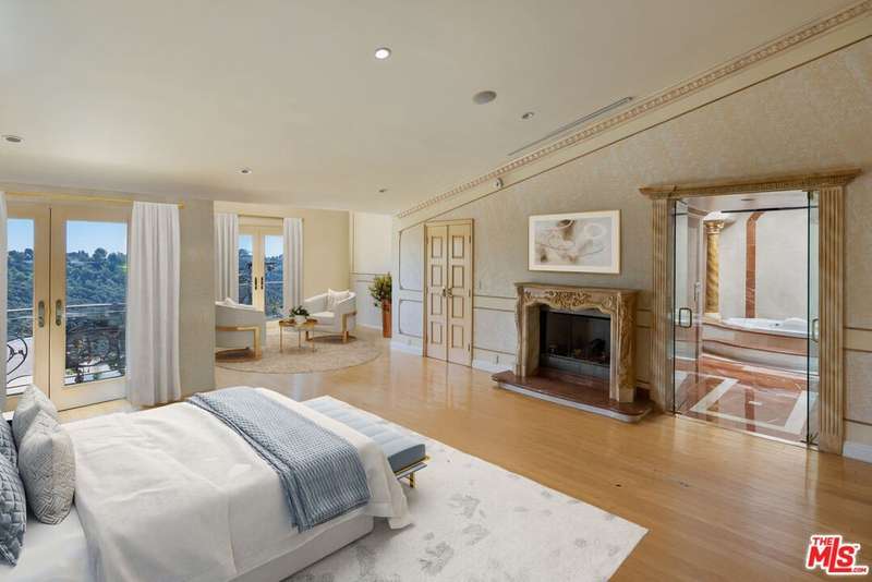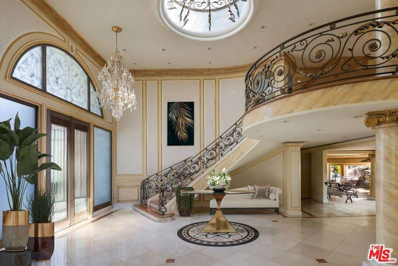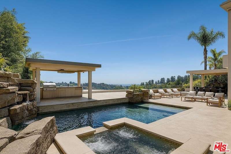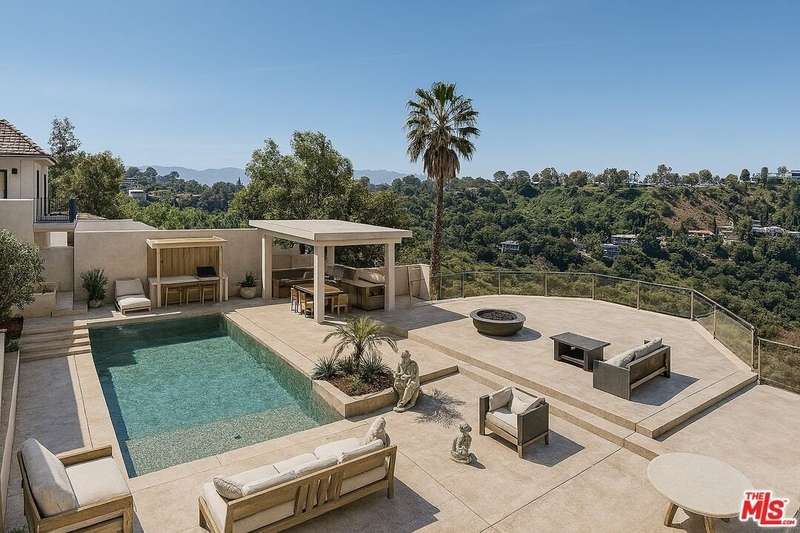 Perched in one of Los Angeles' most prestigious enclaves, 2716 Casiano Road is a striking architectural estate where timeless regency elegance meets contemporary luxury. With sweeping canyon views that stretch all the way to Catalina Island, this one-of-a-kind residence offers a rare blend of grandeur, sophistication, and scenic beauty.A dramatic 19-foot entry foyer sets an opulent tone upon arrival, unfolding into a majestic hall that introduces the home's impressive scale. The formal living room channels the romance of Versailles with its elaborate moldings, double-height ceilings, and steel-framed windows that pour in natural light. Designed with entertainers in mind, the formal dining room is complemented by a cozy breakfast nook and a custom walnut-paneled bar perfect for stylish hosting and intimate gatherings.At the heart of the home lies a chef's dream kitchen, outfitted with top-tier Viking appliances and tailored for gourmet culinary experiences. Upstairs, the expansive primary suite offers a tranquil retreat with its private sitting area, oversized bedroom, and a spa-like marble bath featuring a soaking tub, steam shower, and dual walk-in closets. Four additional ensuite bedrooms some with fireplaces and French doors to private balconies offer elegant comfort for family or guests.Outside, the estate transforms into a resort-like sanctuary. A glistening pool and spa with a cascading waterfall invite total relaxation, while the covered cabana, outdoor lounge, pool house, and expansive terrace with built-in BBQ are made for unforgettable entertaining all framed by lush landscaping and over 50 fruit trees.Featured in numerous film and television productions, this estate holds a touch of Hollywood legacy. Additional amenities include a private guest studio with full bath, a direct-entry two-car garage, and secure gated access. Blending old-world charm with modern luxury, this exceptional property offers a lifestyle of distinction in the heart of Los Angeles.