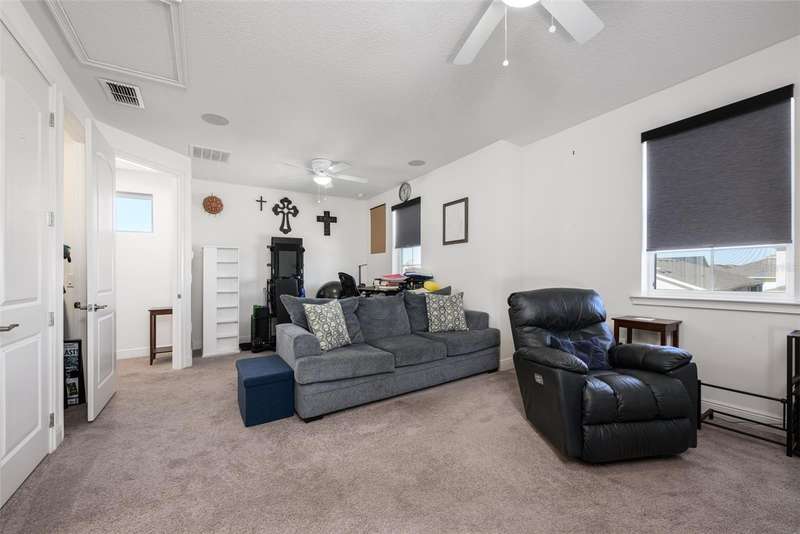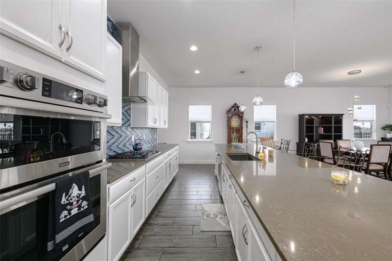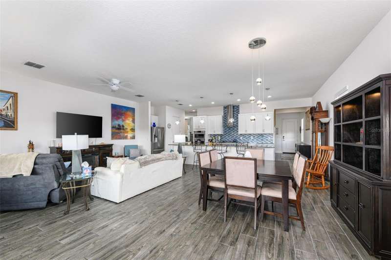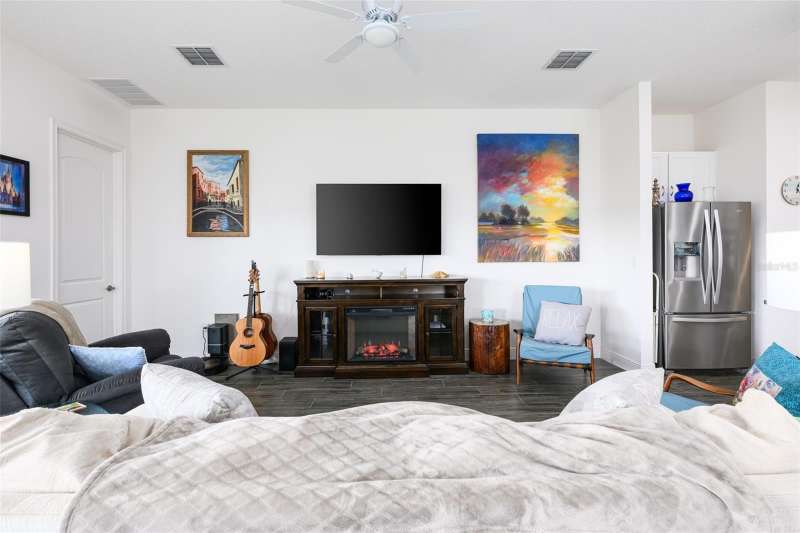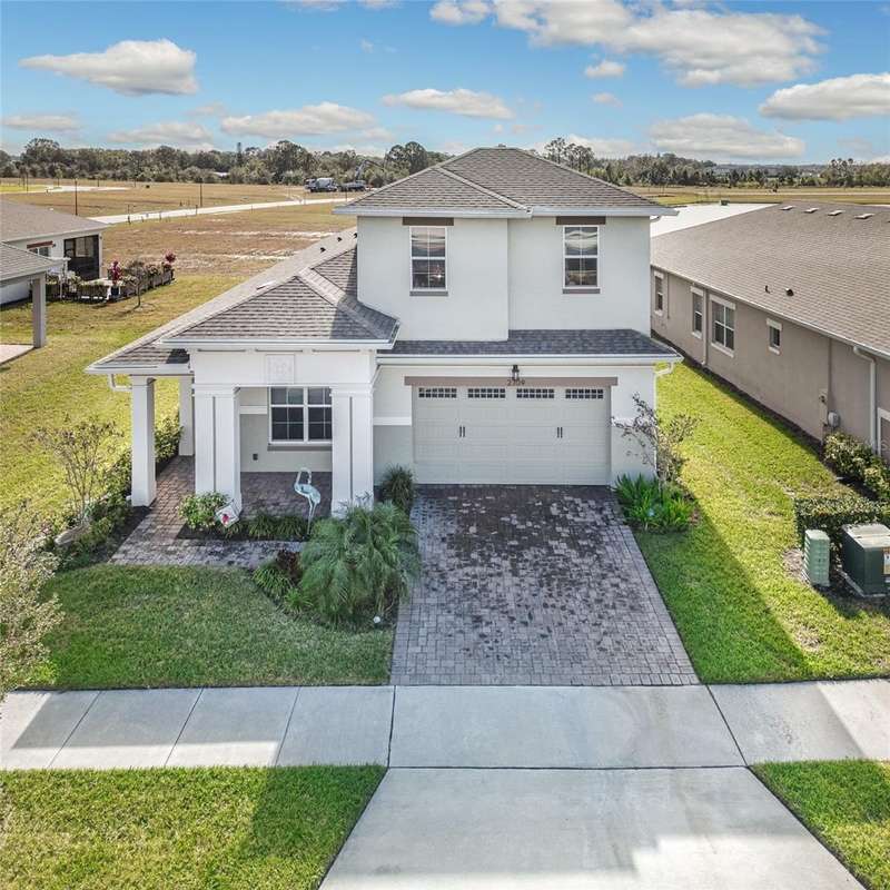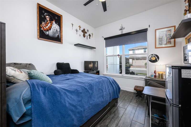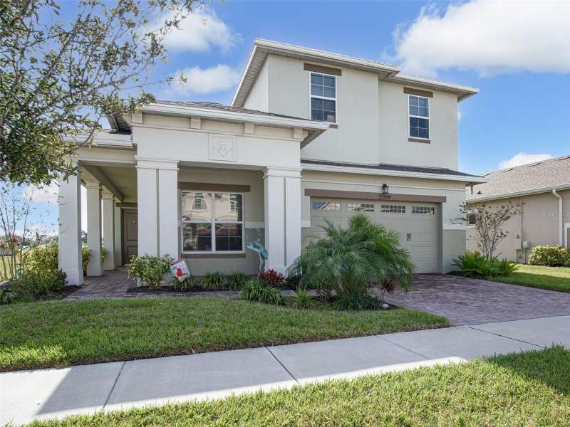 Beautiful 4 bedroom, 4 bathroom home in the highly sought after Twin Lakes 55+ Active lifestyle community. The Marco 2 is a two story beautiful home with a versatile floor plan. When you step inside, you will be greeted with 10 foot ceilings and upgraded ceramic tile throughout the home. As you enter the kitchen you will be greeted with an upgraded kitchen with stainless steel appliances, convection oven, gas stove, 42" upgraded cabinets, quartz countertops, glass tile backsplash, walk-in pantry and a 10 foot island with upgraded pendant lights that easily seats 6 people. The Living Room/Dining Room combo has upgraded light fixtures and recess lighting. The sliding glass doors that lead out to the screened porch, open all the way for the ultimate indoor/outdoor Florida living. Out on the screened porch you can sit and enjoy the view of the pond in the back while drinking your morning coffee. The master bedroom has a large walk-in shower with glass doors and a large walk-in closet with a newly installed closet organizing system. There are two more bedrooms on the first floor. Bedroom 2 includes a full bath and a walk-in closet. The 3rd full bath is in the hallway to also be used as a guest bathroom. Bedroom 3 is just down the hall with a nice size closet. Off Bedroom 3 you'll find the office area that is already piped for water if you would like to add a wet bar. The stairs lead up to the second floor where you will find the 4th bedroom and 4th bathroom. This flexible room is currently being used as the owner's media room and office. Amenities include a resort style pool and lap pool, 20,000 square foot Clubhouse, fitness center, tennis courts, putting green, walking trails, pickle ball court, fishing and pontoon boats to use on Live Oak Lake. The community has many active and socializing activities for residents to connect with each other. This versatile home could be a wonderful space for multiple family members or friends who wish to live together. Close to Lake Nona Medical City, Orlando International airport, Theme parks, beaches and downtown Orlando. This house is a must see.