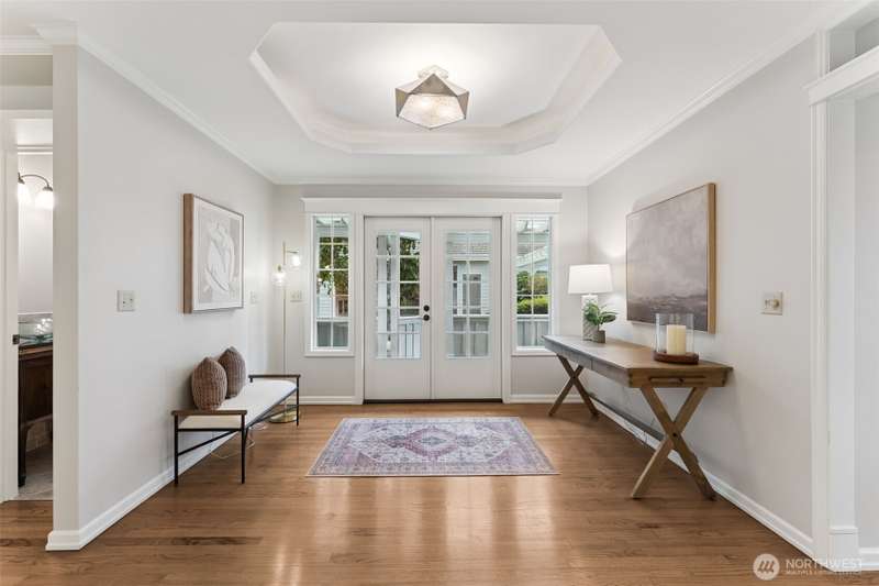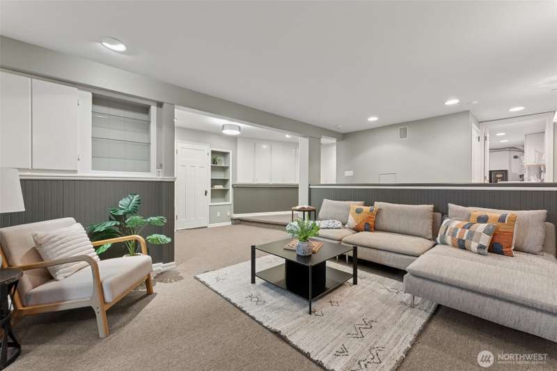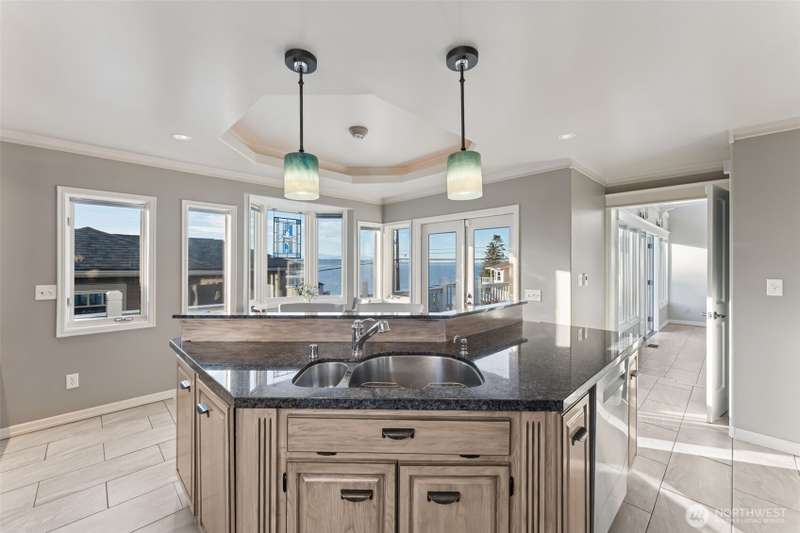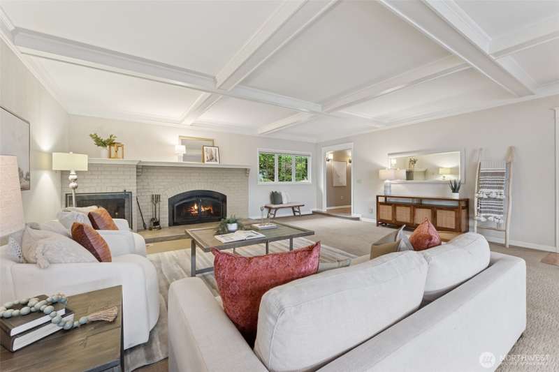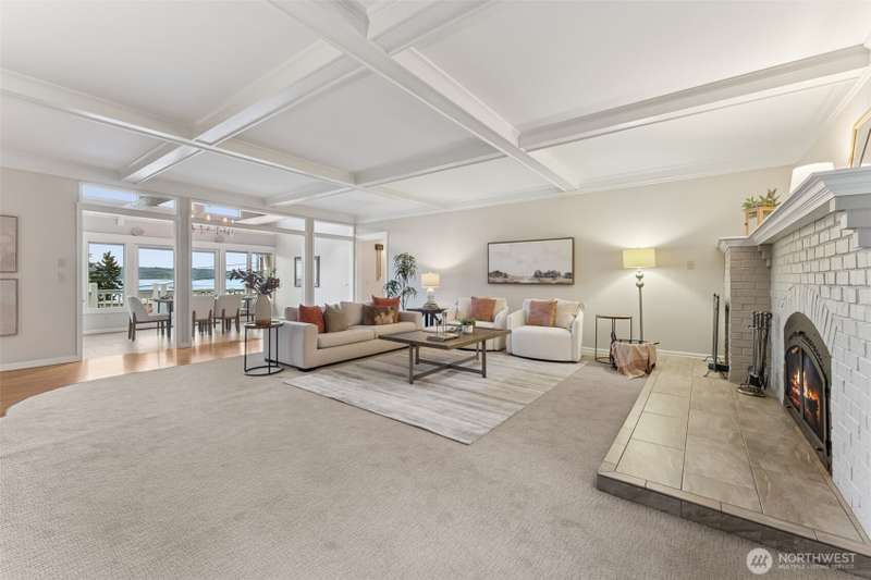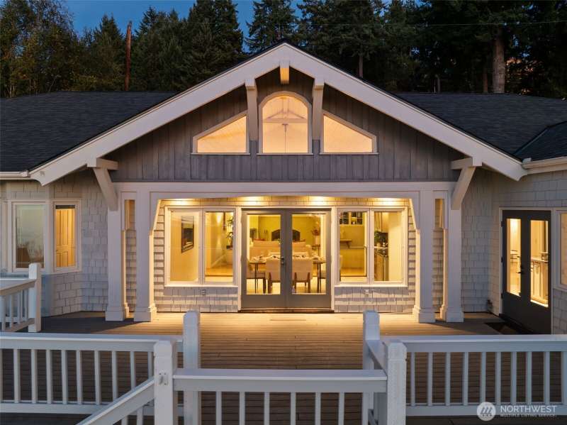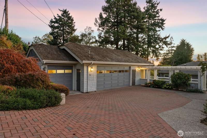 Set just off Maplewild Ave, this Three Tree Point home offers breathtaking views of Puget Sound & the Olympic Mountains. A perfect blend of traditional architecture & modern design, home features beautifully updated kitchen & baths, a huge living room ideal for entertaining, tall ceilings & a bold statement fireplace. Enjoy stunning views from every west-facing room. Primary suite has a full bath, walk-in closet, & French doors that open to a private patio w/ views. Loft/ bonus room. Lower level: family room wired for surround, shop/ tool area, large laundry room w/ folding station, ample storage, & half bath. Generac Generator. Fully fenced, well-manicured yard. Detached 3-car garage w/ separate garden room & half bath. Welcome home!