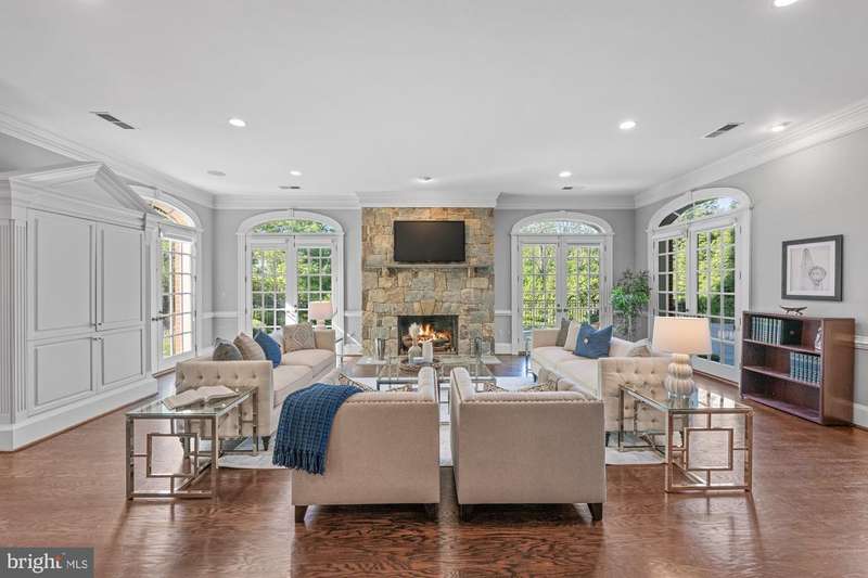 Timeless elegance nestled in the heart of prestigious enclave of Langley Farmsone of McLeans most sought-after neighborhoodsthis exquisite Georgian residence, masterfully built by renowned builder George Sagatov, offers a rare blend of classic architecture, modern luxury, and timeless sophistication. Set gracefully on a one-acre lot of mature, professionally designed landscaping, this home is an exceptional offering for the discerning buyer.From the moment you arrive, this distinguished estate captivates with its grand approach and stately curb appeal. Upon entry, a soaring foyer, resplendent with marble tile, an elegant staircase, and intricate trimwork, establishes the standard for the impeccable finishes found throughout the home. The foyer unfolds into a magnificent great room, anchored by a commanding fireplace and framed by expansive windows that reveal sweeping views of the lush backyard and stunning swimming pool.Natural light floods the residence, highlighting the remarkable craftsmanshiparched windows, high ceilings, and extensive millwork that elevate each room. The formal living room is anchored by a marble-surround masonry fireplace with gas logs, while the dining room features a second fireplace, built-in cabinetry, and seamless access through a remodeled butlers pantry to the heart of the home: the gourmet kitchen.Thoughtfully reimagined and recently renovated for todays chef, the kitchen is a masterpiece of form and function with custom cabinetry, quartzite countertops, premium stainless steel appliances, a generous center island, and abundant natural light. French doors open to an elevated patio overlooking the private rear grounds and large shimmering poolperfect for alfresco dining and entertaining.The richly appointed office features bespoke wood paneling, a marble surround masonry fireplace with gas logs, built-in bookshelves, and a charming window seat, creating an inspiring space to work or reflect.Upstairs, the luxurious primary suite is a serene retreat, offering a renovated spa-like bathroom with dual vanities, soaking tub, separate shower, water closet, skylights, and a spacious walk-in closet. Three additional en-suite bedrooms, each with walk-in closets, complete the upper level.The walk-out lower level is a destination unto itselfdesigned for both entertainment and relaxation. With high ceilings and full-sized windows, this level includes a generous wet bar, gracious wine cellar, billiards room, gym, and a large recreation space with a striking stone masonry fireplace with gas logs. A private guest suite with a full bath provides ideal accommodations for visitors. Multiple access points lead to the expansive rear terrace, where the glistening pool, lush lawn, and dedicated garden area offer a resort-style experience with complete privacy.Additional features of this exceptional residence include six elegant masonry fireplaces with gas logs that add warmth and character throughout the home, as well as a state-of-the-art solar panel system with battery backup, ensuring energy efficiency and peace of mind. The fully fenced rear yard offers multiple entertaining zones, perfect for gatherings or quiet relaxation. With approximately 6,850 square feet above grade and approximately 10,000 finished square feet across all levels, there is ample space for formal entertaining or everyday living. A circular driveway and a side-loading three-car garage provide both convenience and impressive curb appeal.With a classic floorplan enhanced by thoughtful renovations and set on a beautifully landscaped lot, this extraordinary residence offers an unmatched combination of elegance, comfort, and modern convenienceall just minutes from the best of McLean and Washington, D.C.