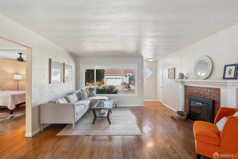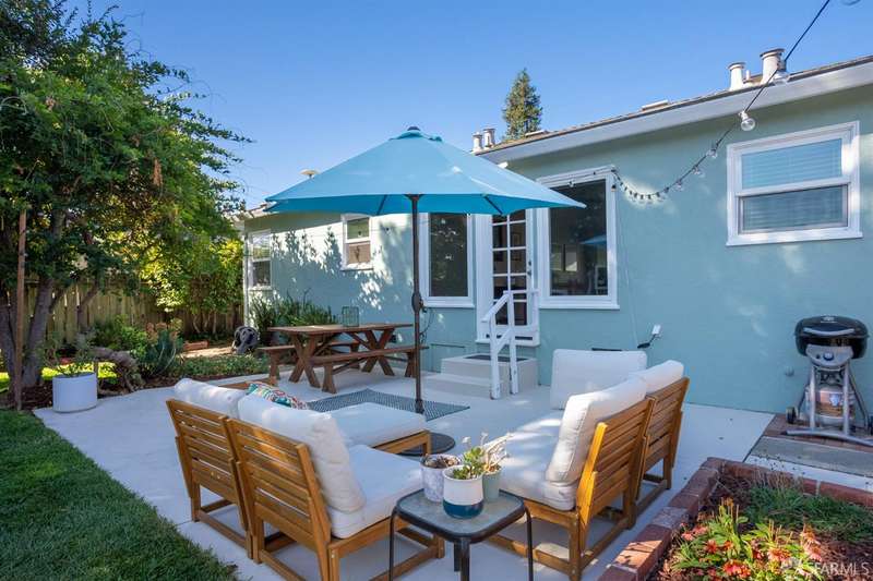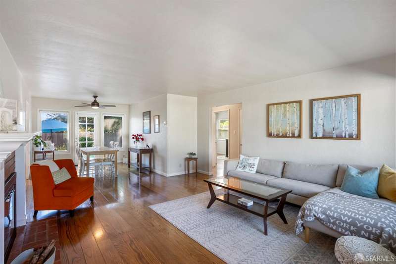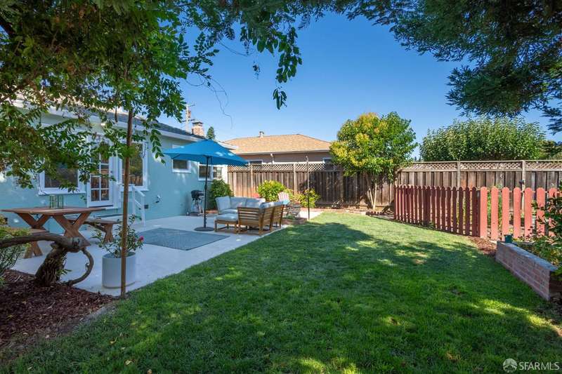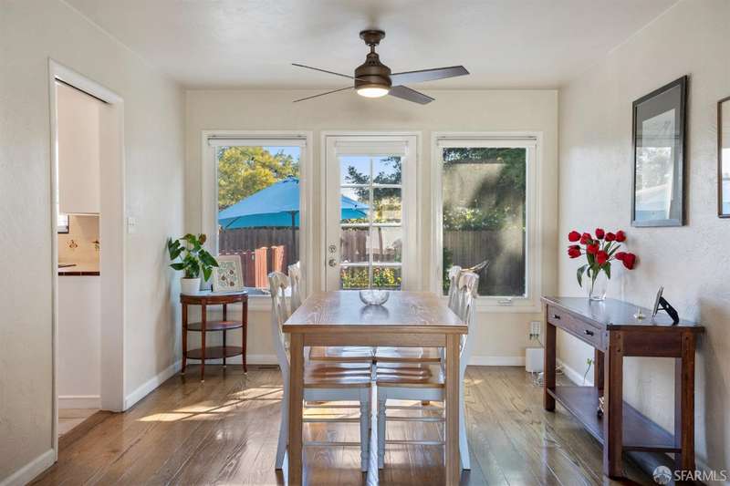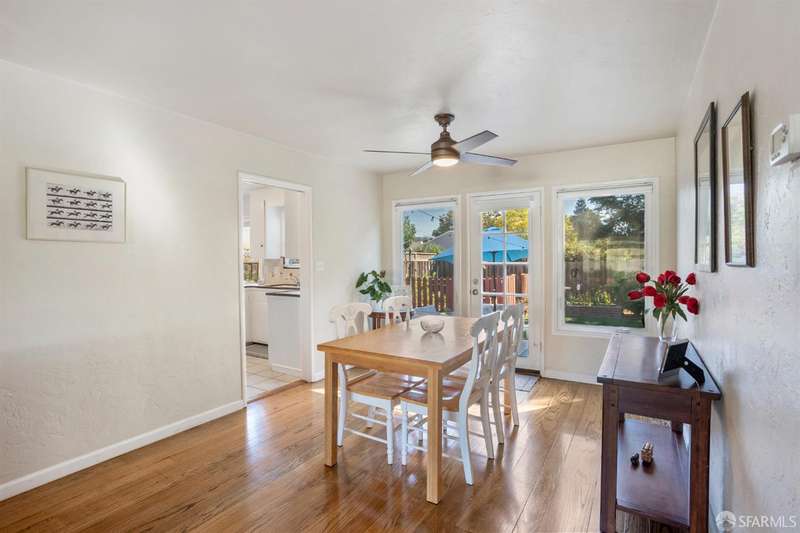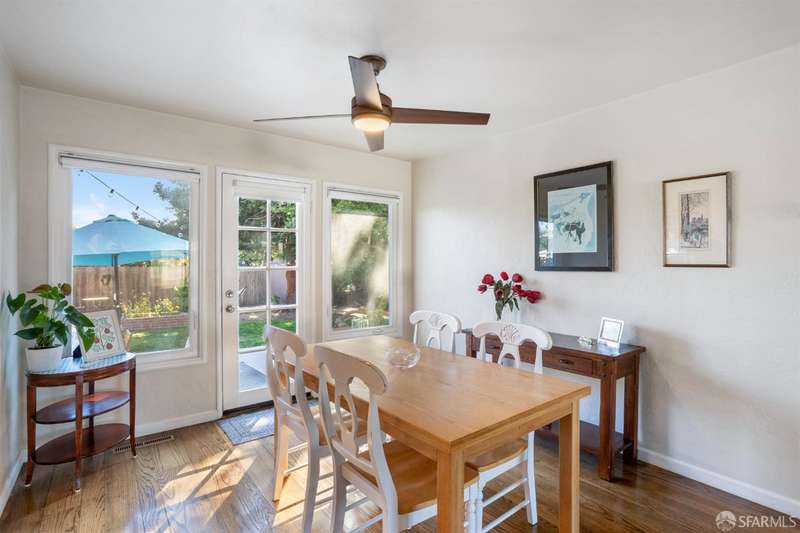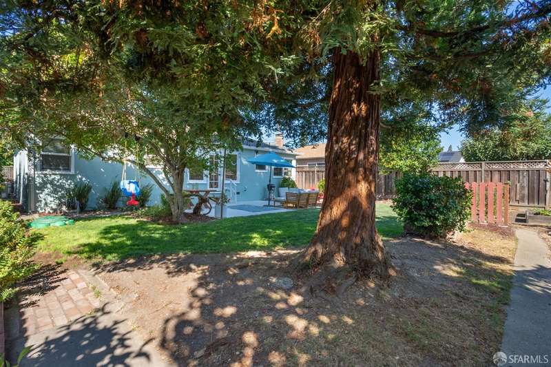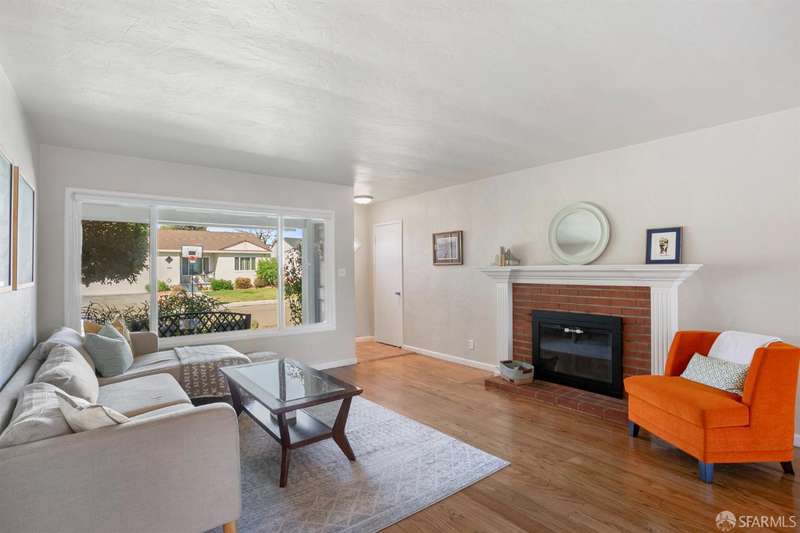 This inviting 1954 ranch home offers the perfect blend of period charm and thoughtful modern updates. Step inside to a bright, functional layout with hardwood floors, a classicfireplace, and a sun-filled kitchen with cheerful breakfast nook. The dining room opens directly to a backyard oasis featuring lush green grass, wisteria, roses, hydrangeas, and other mature plantings, with a beautiful redwoodtree providing shade an idyllic setting for gardening, entertaining friends, or simply unwinding outdoors. Recent upgrades add comfort and peace of mind, including a brand-new HVAC system with high-efficiency furnace and central AC, a 200-amp electrical panel, EV charger, seismic anchor bolts, and fresh exterior paint. The home's location is equally appealing: just a short stroll to Philz and other coffee shops, local markets, and neighborhood restaurants, and near award-winning schools. With easy access to 580, 880, and BART, commuting to San Francisco, Palo Alto, or San Jose is simple and convenient. This truly move-in-ready home offers classic style, modern convenience, and a welcoming indoor-outdoor lifestyle in one of Castro Valley's most peaceful settings.