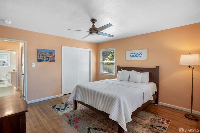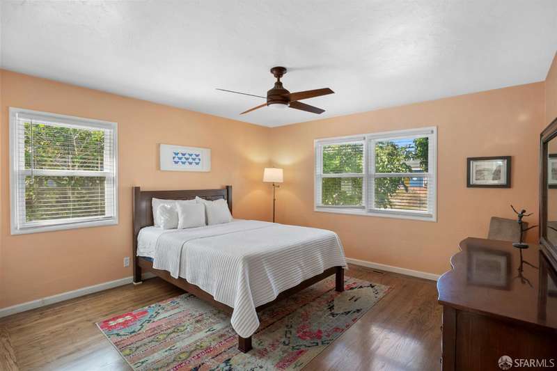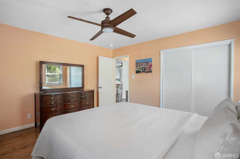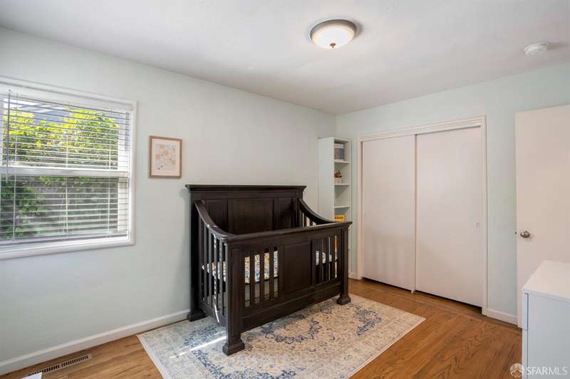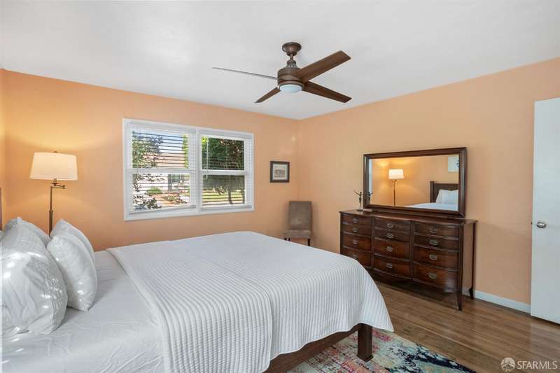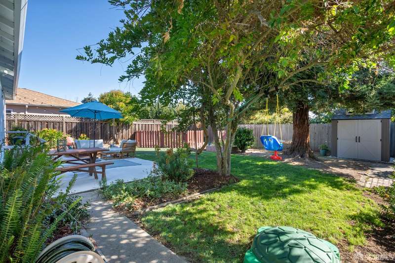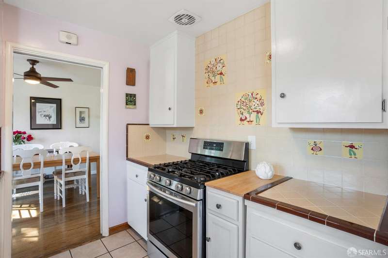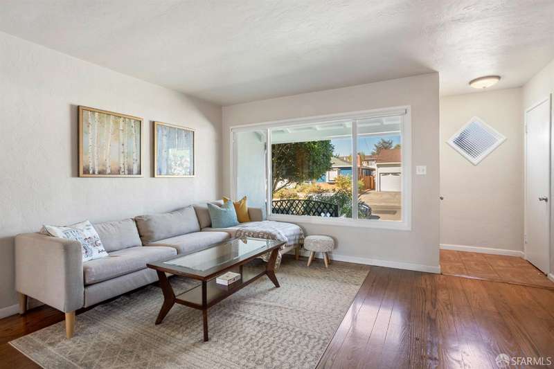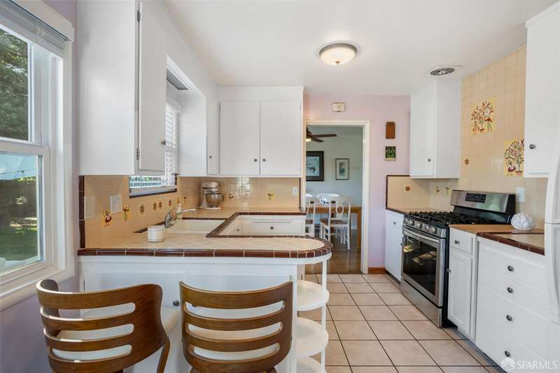 This inviting 1954 ranch home offers the perfect blend of period charm and thoughtful modern updates. Step inside to a bright, functional layout with hardwood floors, a classicfireplace, and a sun-filled kitchen with cheerful breakfast nook. The dining room opens directly to a backyard oasis featuring lush green grass, wisteria, roses, hydrangeas, and other mature plantings, with a beautiful redwoodtree providing shade an idyllic setting for gardening, entertaining friends, or simply unwinding outdoors. Recent upgrades add comfort and peace of mind, including a brand-new HVAC system with high-efficiency furnace and central AC, a 200-amp electrical panel, EV charger, seismic anchor bolts, and fresh exterior paint. The home's location is equally appealing: just a short stroll to Philz and other coffee shops, local markets, and neighborhood restaurants, and near award-winning schools. With easy access to 580, 880, and BART, commuting to San Francisco, Palo Alto, or San Jose is simple and convenient. This truly move-in-ready home offers classic style, modern convenience, and a welcoming indoor-outdoor lifestyle in one of Castro Valley's most peaceful settings.