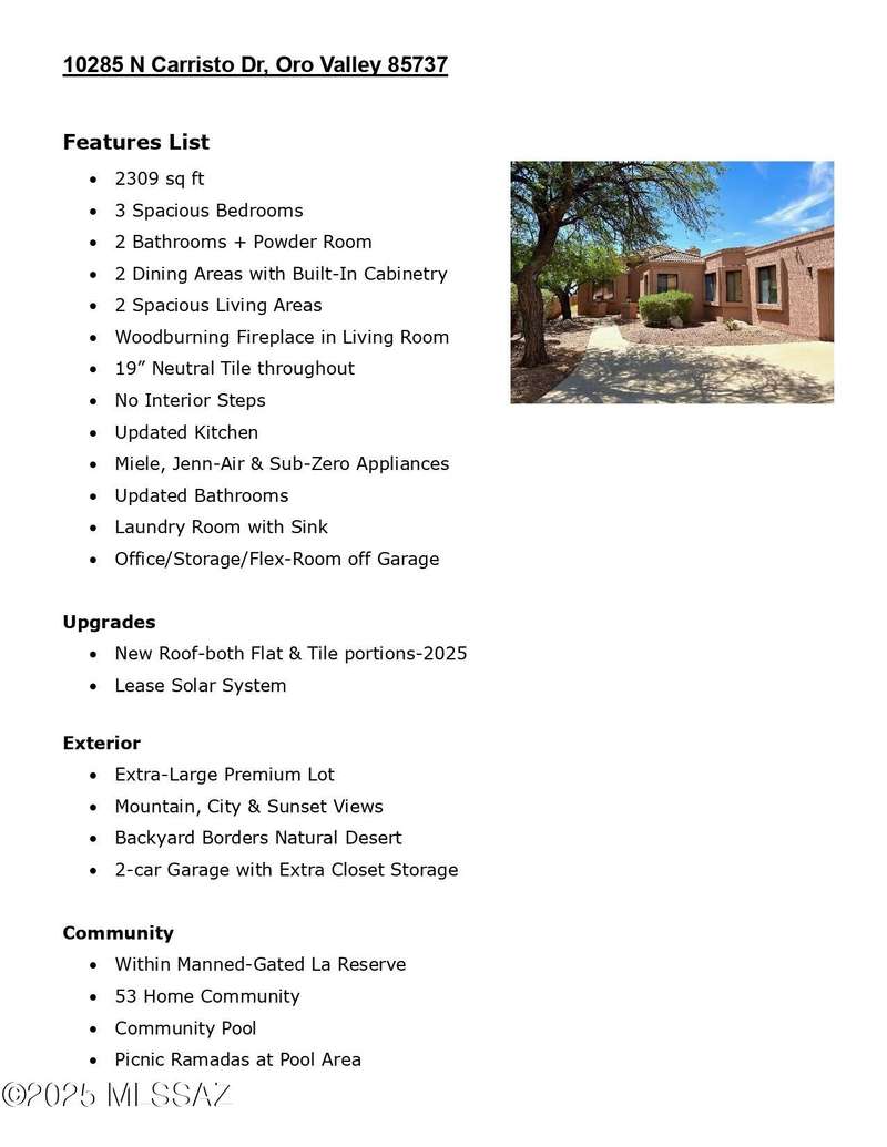 Nestled within the highly sought-after gated community of Ram's Hill at La Reserve, this original owner home sits on an extra-large premium lot which provides plenty of privacy with beautiful mountain and sunset views. This 2309 sq ft home features 3 spacious bedrooms , 3 upgraded bathrooms, 2 dining areas, laundry room and a large flex room (office, home gym, or storage). Upgraded kitchen features Miele, Jenn-Air & Sub-Zero appliances and granite counters/backsplash. 19'' neutral tile throughout. All one level with No step-down living room. The small 53 home comm unity offers a large sparkling pool and picnic ramadas. Leased solar. Roof replaced in 2025!