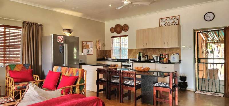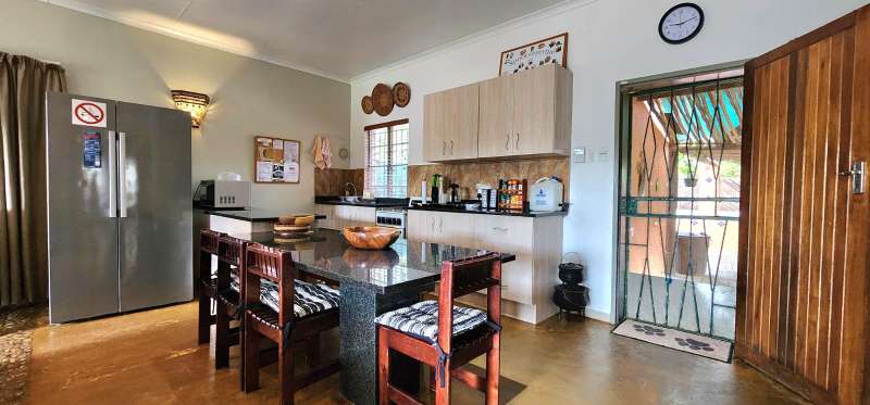 Exclusively to Chas Everitt Marloth Park Classic Elegance This home enjoys the serenity of a quiet area close to the river. With its welcoming ambiance and well-designed spaces, the property has proven to be a favorite among its visitors. A charming face brick home with a tiled roof, featuring three spacious bedrooms and two bathrooms. The open-plan kitchen and lounge flow seamlessly onto a private courtyard, complete with a pool and inviting entertainment area. Adding to its appeal, the property is equipped for off-grid living with a borehole, sprinkler system, and solar power. Furthermore, a single carport and two storerooms offer additional storage and utility space. Approved plans for a double garage and an en-suite bathroom to the main bedroom provide exciting potential for future expansion. This home's versatility makes it equally appealing as a permanent residence, a weekend retreat, or a sound investment. Get in touch ?Çö we would love to take you on a tour!