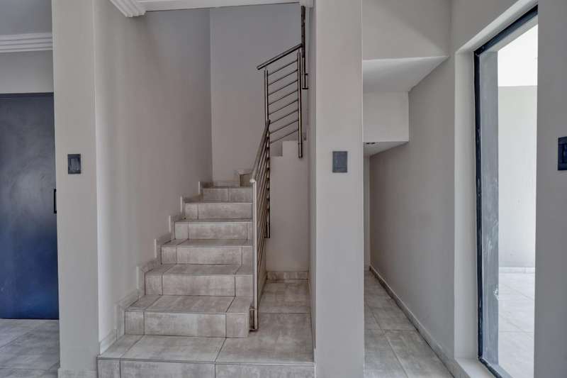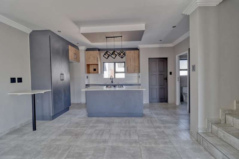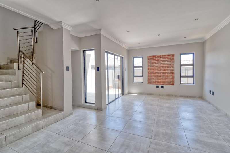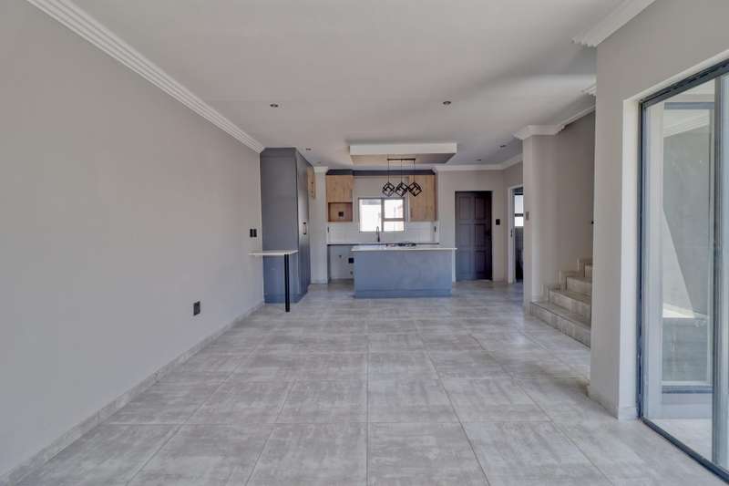 Welcome to this stunning 3-bedroom, 2-bathroom property designed for contemporary living and comfort. Situated in a secure and well-maintained complex, this home offers a delightful combination of modern amenities and a serene environment. As you enter, you'll be greeted by a spacious lounge perfect for relaxation and entertainment. The property boasts a well-appointed kitchen with built-in cupboards, providing ample storage space for all your culinary needs. The dining area is ideal for intimate family meals or hosting guests. The three bedrooms are equipped with built-in cupboards, ensuring ample storage and a clutter-free living space. Additionally, the master bedroom features an en suite bathroom for added convenience and privacy. A guest toilet is also available for the comfort of your visitors. Outside, the property offers a well-maintained garden and a charming patio area where you can enjoy your morning coffee or host outdoor gatherings. The built-in-braai adds an extra touch of convenience, perfect for hosting delightful barbecues or enjoying outdoor cooking. Security is paramount, and this property offers 24-hour security, electric fencing, and an access gate, ensuring you and your loved ones feel safe and secure at all times. The two garages provide ample space for parking and storage needs. If you have pets, they are more than welcome to enjoy the spacious surroundings and the garden. With its two-storey layout, this property offers an excellent balance of space and privacy. The paving around the property ensures easy maintenance, leaving you with more time to relax and enjoy your surroundings. This is the perfect opportunity to embrace a comfortable and secure lifestyle in a modern and inviting setting. Don't miss out on the chance to make this your dream home!