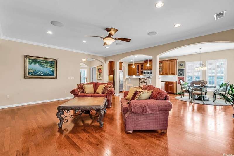 Your Wait is Over – The Perfect Creekhaven Home is Here! Opportunities like this don’t come around often. This beautifully maintained Creekhaven home offers nearly 3,000 square feet of thoughtfully designed living space, including four bedrooms, three and a half baths, a spacious bonus room, and an upstairs loft—giving you all the flexibility and room you could want. Located at the rear of one of the community’s most private, low-traffic loops, this home sits across from a serene common green space and benefits from extra side yard privacy thanks to a unique easement on the left side. The setting is peaceful and quiet—an ideal retreat in the highly sought-after Prince Creek area of Murrells Inlet. Step inside and you'll immediately notice the airy, open layout. The main level features a large, private dining room, an expansive living room complete with built-in shelving, and a generously sized kitchen with a breakfast nook. The first-floor owner’s suite offers a spacious bathroom with dual vanities, a soaking tub, and separate his-and-her closets. You'll also find a separate laundry room and a convenient half bath on the main level. Upstairs includes a roomy loft, a bonus room, three additional bedrooms, and walk-in storage space. Outdoor living is just as impressive with a welcoming front porch and a large screened-in back porch perfect for relaxing or entertaining. Additional features include a new roof replaced in 2023, gas whole home generator, and a transferable termite bond for added peace of mind. Creekhaven is located in the very back of Prince Creek, offering an even more tranquil setting. As part of Prince Creek West, residents enjoy access to a private amenity center featuring two pools (including a kiddie pool), a nature trail through the Lowcountry landscape, basketball, pickleball, and tennis courts, as well as bocce ball, horseshoes, a playground, restrooms, and a large covered pavilion with fireplace and picnic tables—perfect for gatherings and events. The Creek Haven community is known for its vibrant coastal charm, featuring Charleston-style architecture and bold beach-inspired colors. When developed, the neighborhood set a high standard for construction quality by requiring raised slab foundations and concrete fiber siding, providing both visual appeal and long-term durability. Don’t miss your chance to own this standout home in one of the Grand Strand’s most desirable neighborhoods. It’s everything you’ve been waiting for—and more.