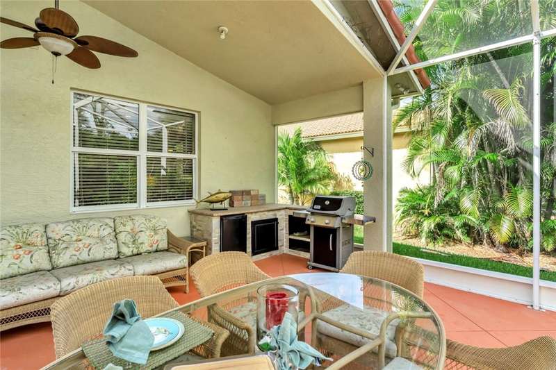 Woodfield 55+ Community 3BR/2BA enjoys peace & privacy w/ preserve location. Beautifully maintained 2,150 sf w/volume ceilings, tile floors, impact windows & island kitchen. Walk in tub & huge 11x6 closet in primary suite. Extended screened patio with summer kitchen is perfect for entertaining or relaxing outdoors. Active social calendar & resort-style clubhouse with pool, HarTru tennis, fitness, billiard rm, Bocce & onsite manager. Conveniently located near Vero Beachs shopping, dining & cultural venues & events. Sizes are approx/subj to error.