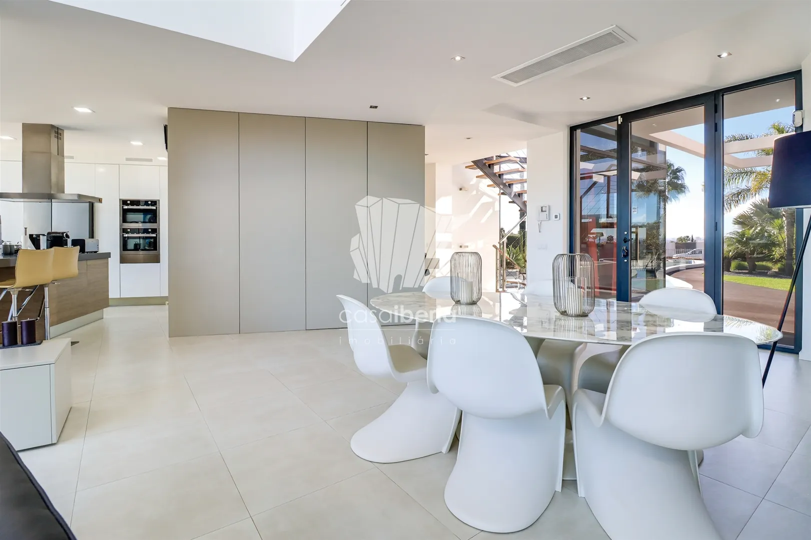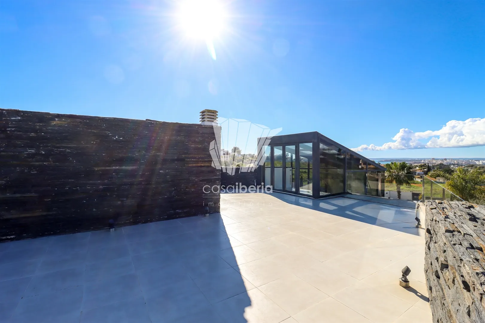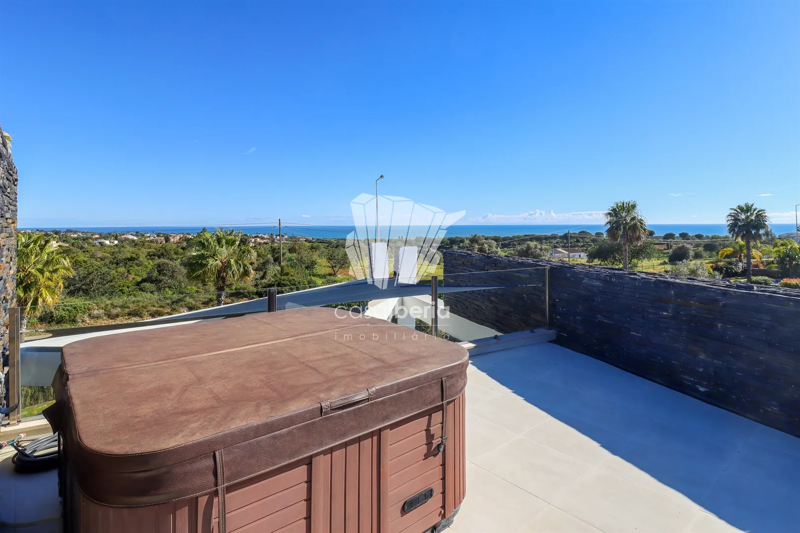 We proudly present this magnificent contemporary villa, offering breathtaking views of the sea and the Monchique Mountain range — a perfect choice for those seeking comfort, elegance, and quality of life. Situated in a peaceful residential area, just a short distance from the picturesque village of Ferragudo and the spectacular beaches of Caneiros, Praia Grande, Pintadinho, and Molhe, this property stands out for its modern architecture, high-quality finishes, and spacious interiors — ideal for family living.