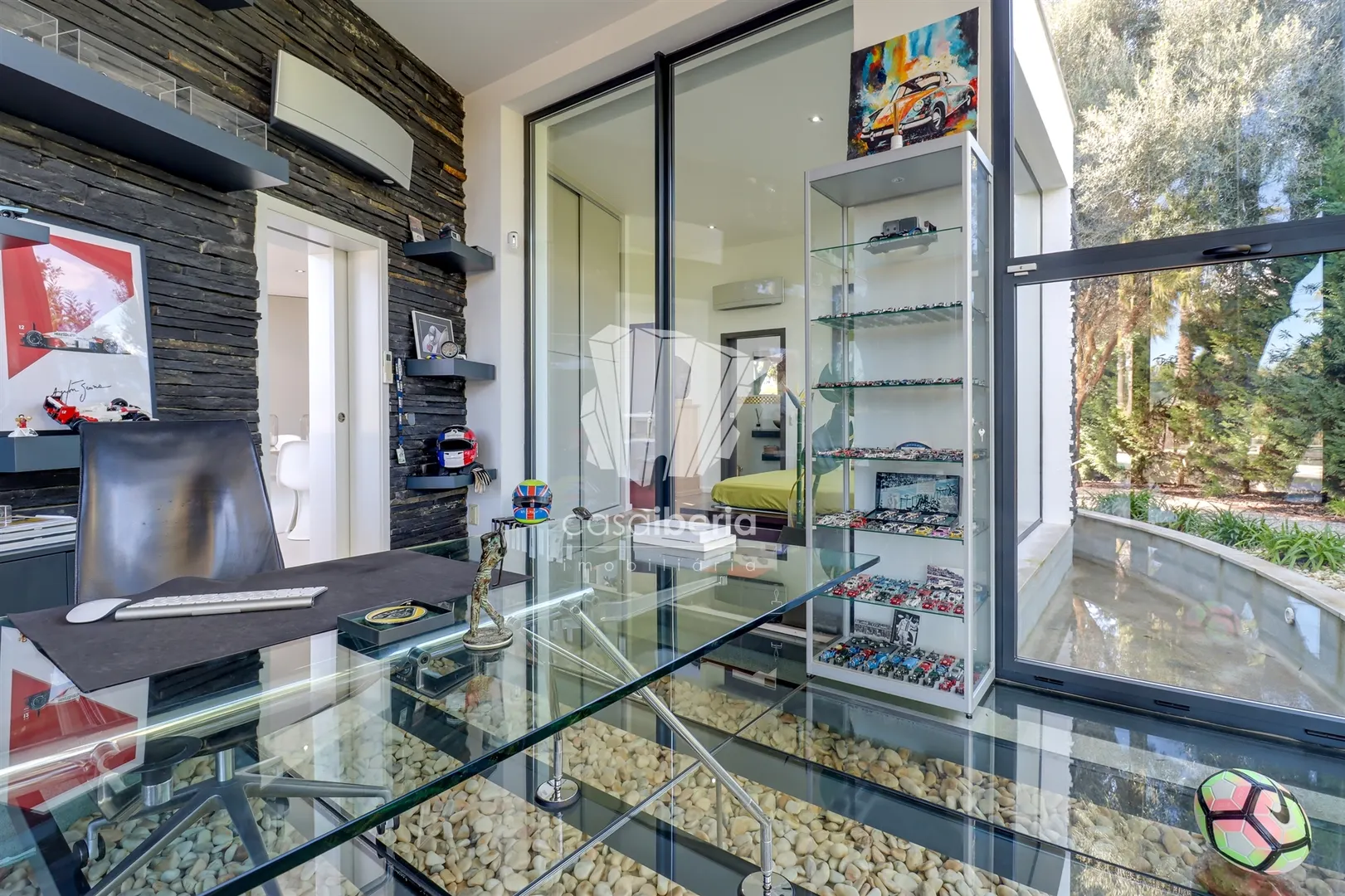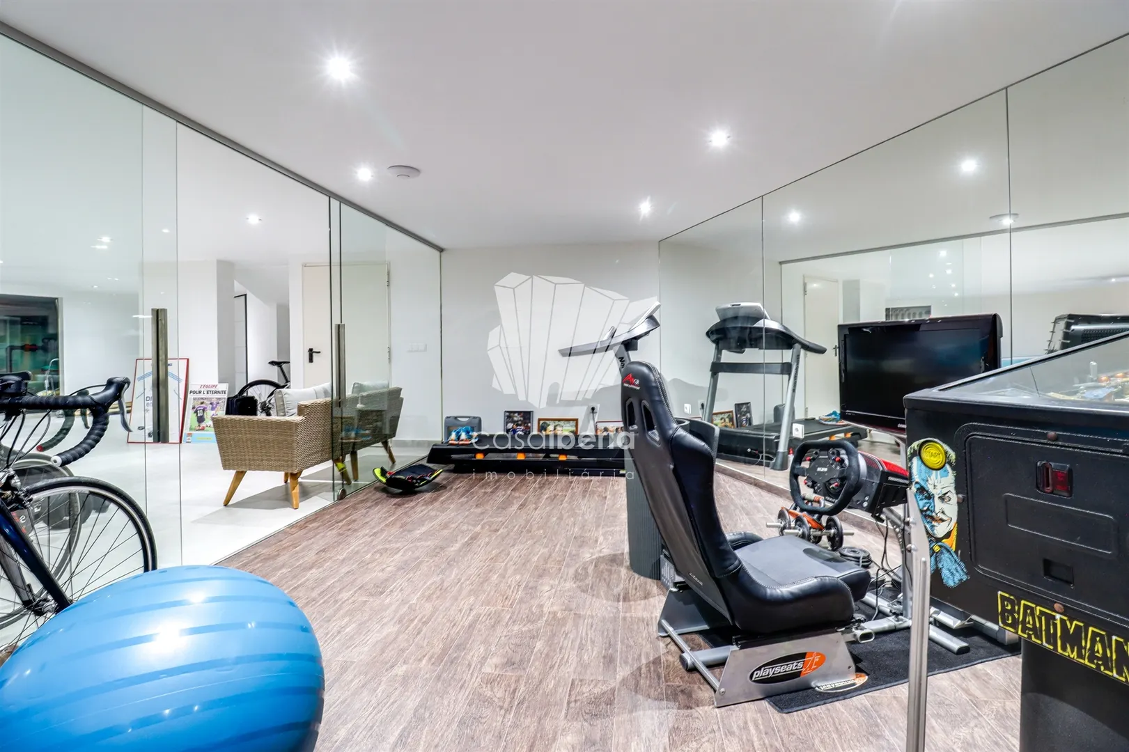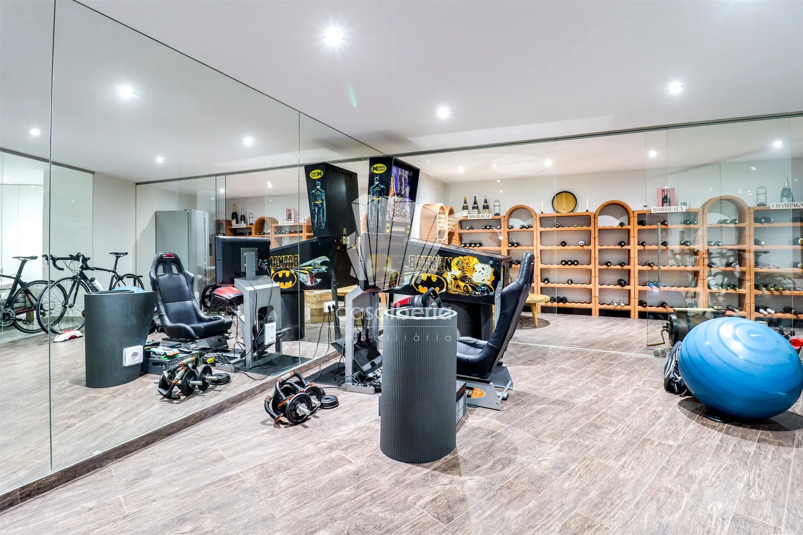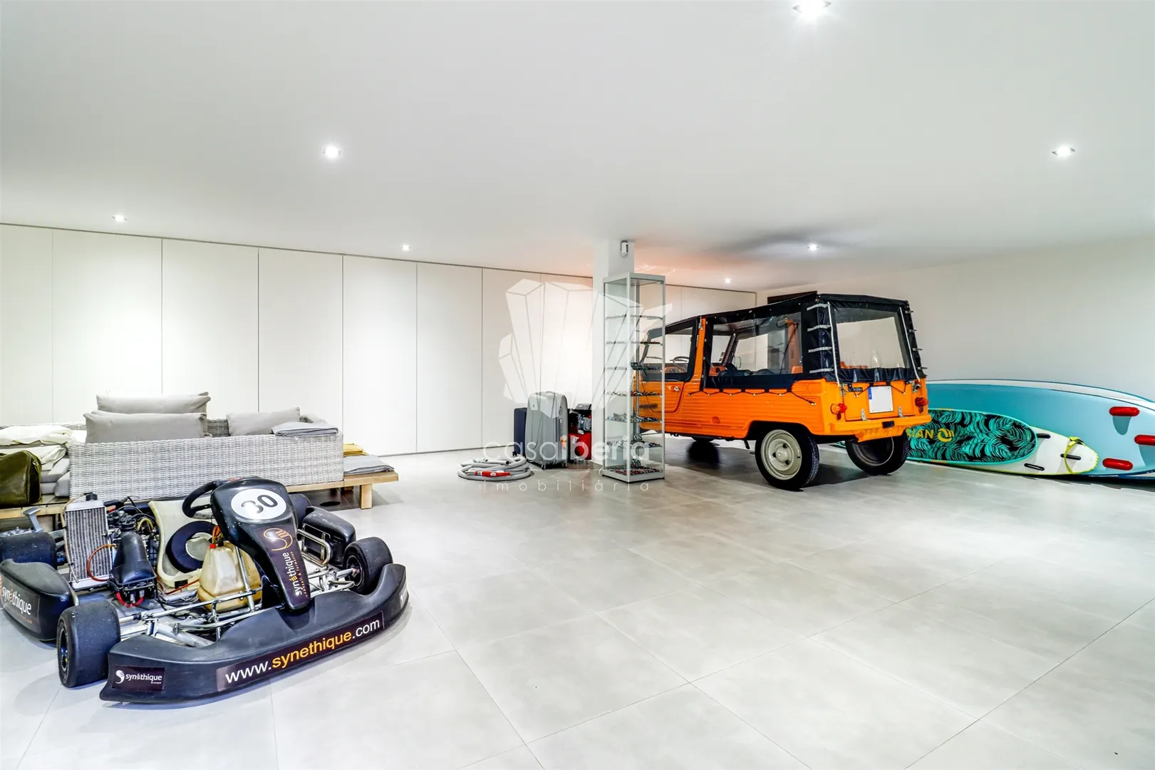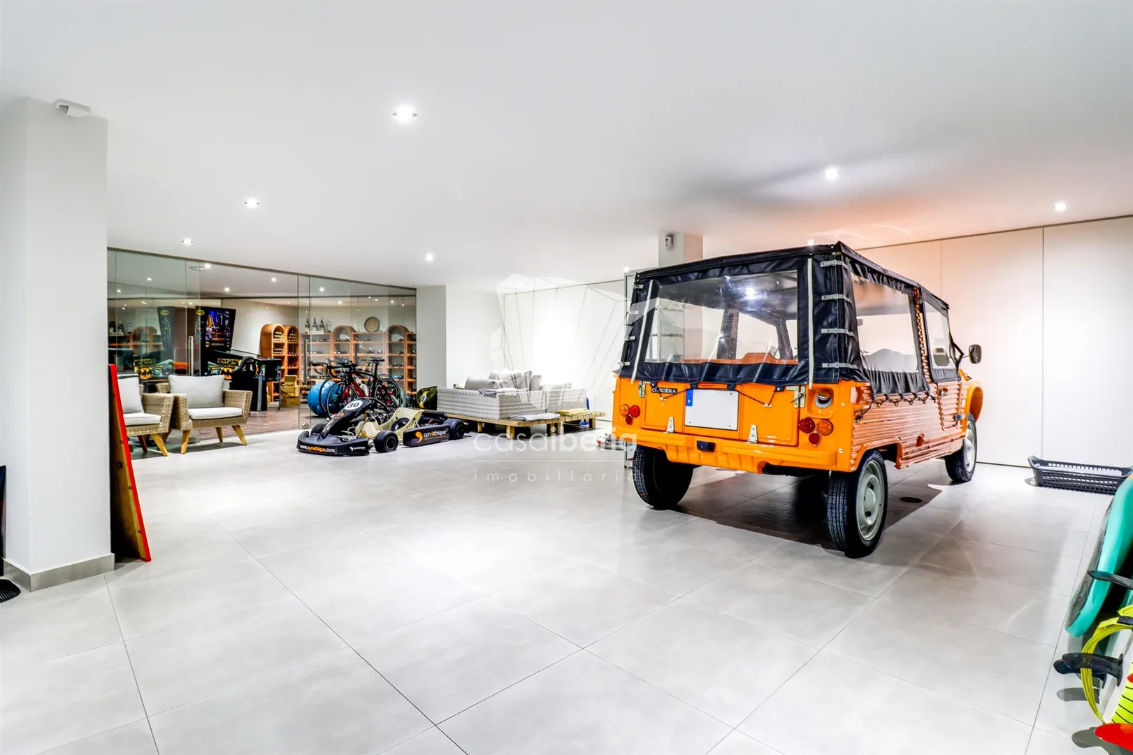 Additionally, the villa boasts a spacious garage for up to four cars, a machine room, a laundry room, a wine cellar, a gym, and a storage area — offering all the amenities for practical and comfortable living.