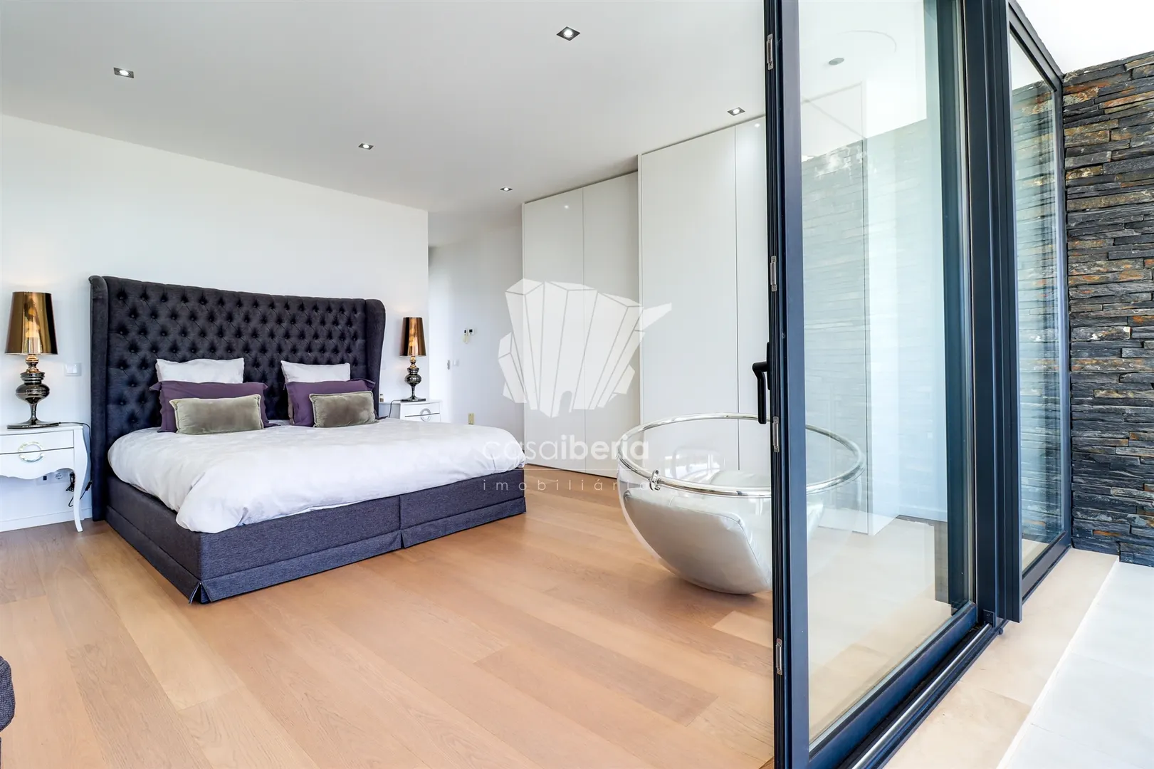 The entrance to this remarkable villa is distinguished by its elegance and grandeur, featuring a stunning water mirror that guides you harmoniously to the front door. This architectural element, in addition to creating a sophisticated visual effect, serenely reflects the house's facade and its surroundings, offering a unique sense of harmony, warmth, and exclusivity from the very first moment.
