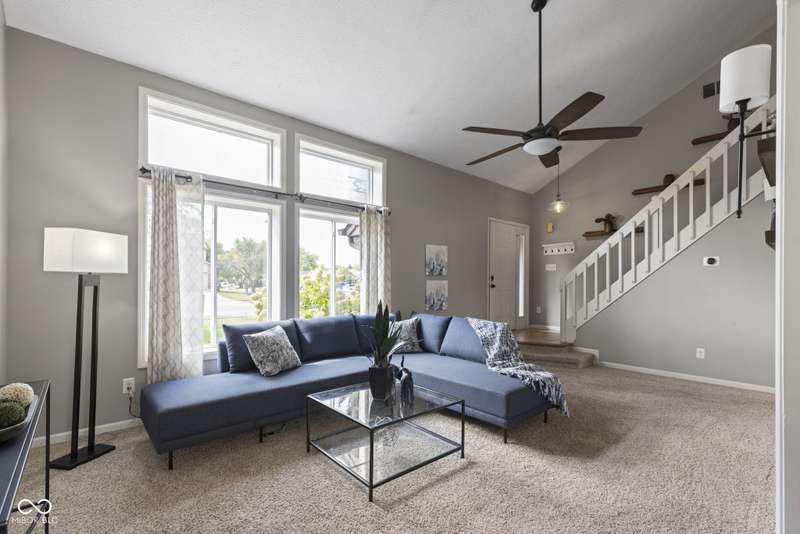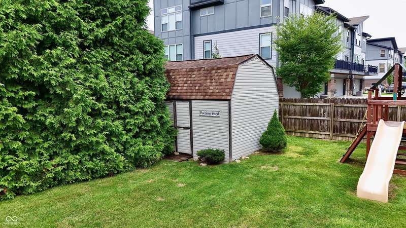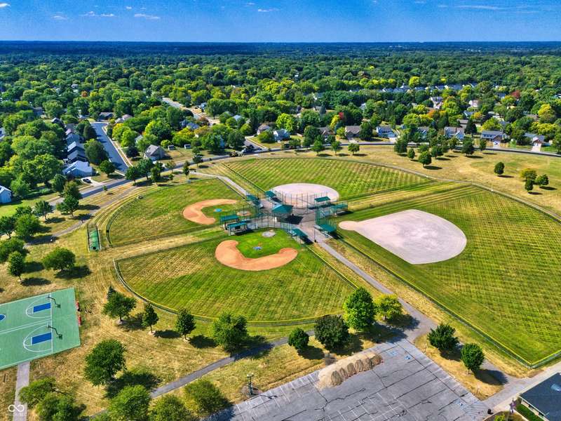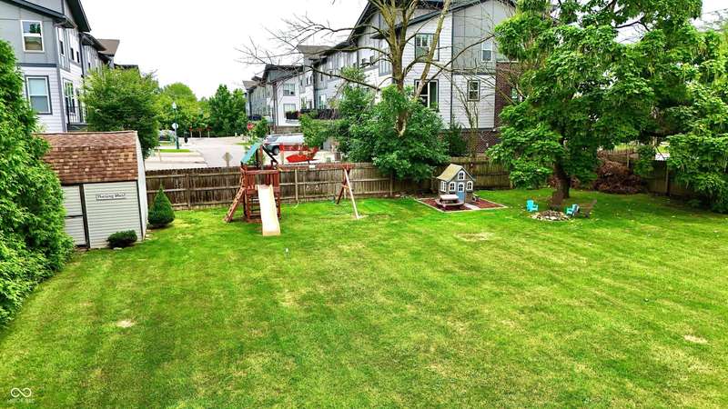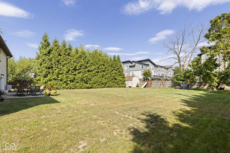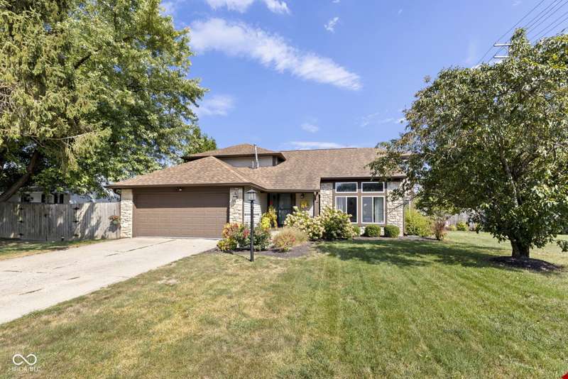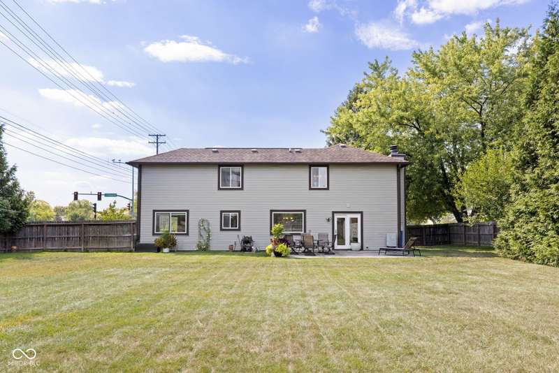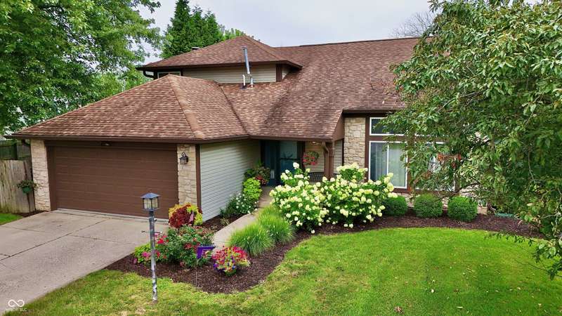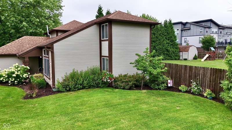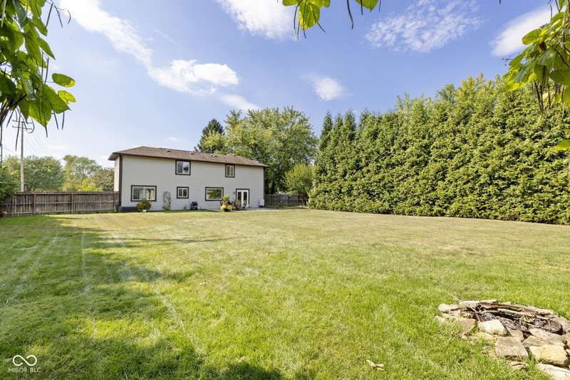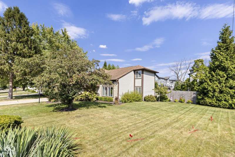 LOCATION doesn't get better than this! Walk to Nickel Plate district & all it has to offer +/- 15 minutes & Roy G. Holland Park in the center of the neighborhood* This fabulous contemporary updated home has so much to offer including a 1/2 acre lot with NO HOA & well manicured landscaping* Just step inside and you'll fall in love with the vaulted 2 story ceiling in the living room with views of the upstairs white craftsman style railing plus floor to ceiling windows which stream tons of natural light* Glass french doors open into the office/flex room* Fully remodeled kitchen ('19) boasts new white 42" cabinets w/soft close dove tailed construction drawers & cabinets, subway tiled backsplash, granite tops w/additional seating & all stainless appliances stay* Kitchen opens into the spacious breakfast nook with large picture window overlooking the beautiful fully fenced backyard & cozy family room with floor to ceiling stone fireplace w/gas insert* Laminate wood flooring runs through those rooms* Washer & dryer stay too* Upstairs has 3 beds & 2 full baths* Primary suite w/walk in closet & en suite bath offering double vanity & walk in shower w/custom tile* Crown molding in FR, breakfast rm, beds 2 & 3* Replacement vinyl windows thruout* Newer mechanicals incl. gas furnace ('23), A/C ('22), gas water heater ('23)* Outside you'll find great outdoor living/entertaining space on your covered front porch & oversized concrete back patio* Private backyard surrounded by large mature Evergreens which give privacy year around* Shed w/loft & electricity + playset* Hard to find a private 1/2 acre lot walkable to downtown Fishers in a move in ready home at this price!