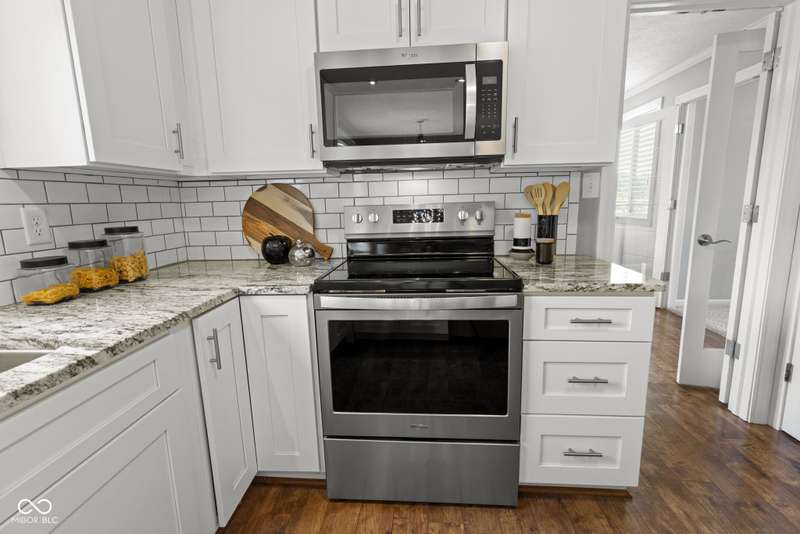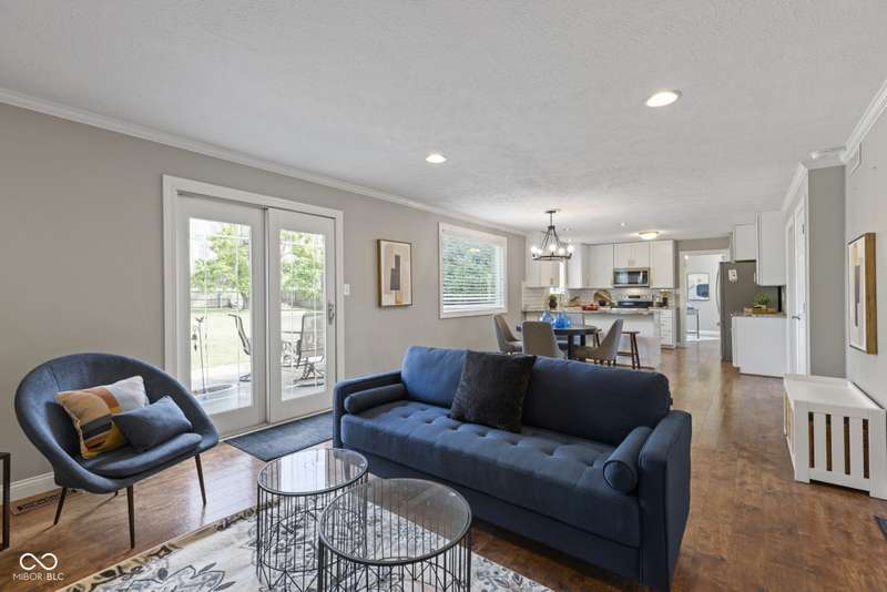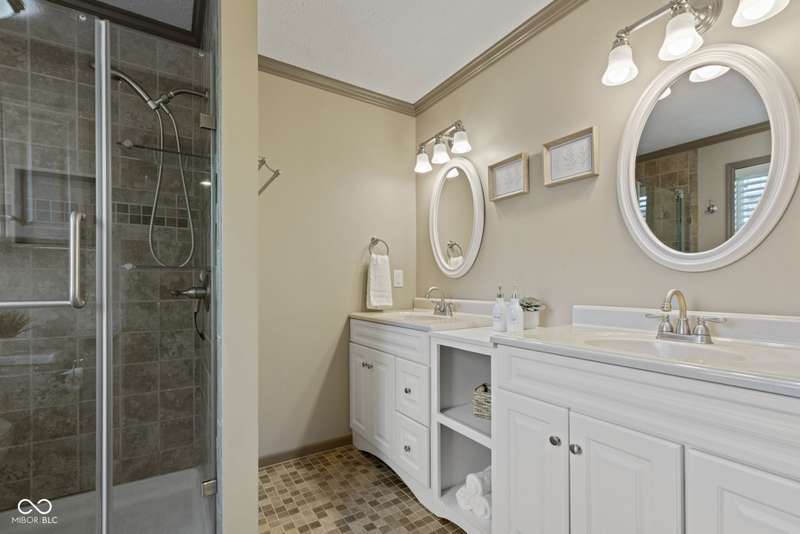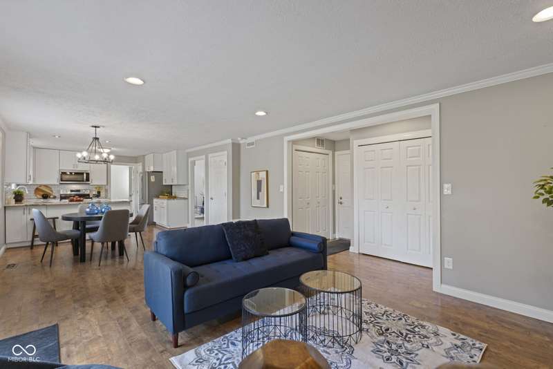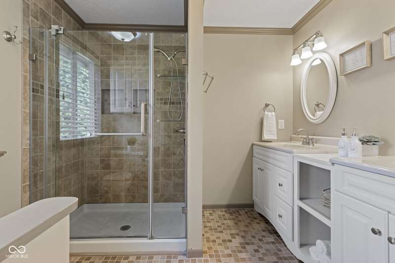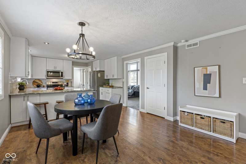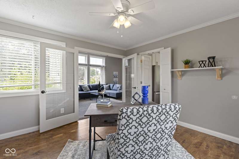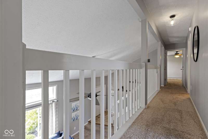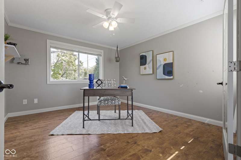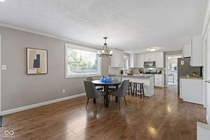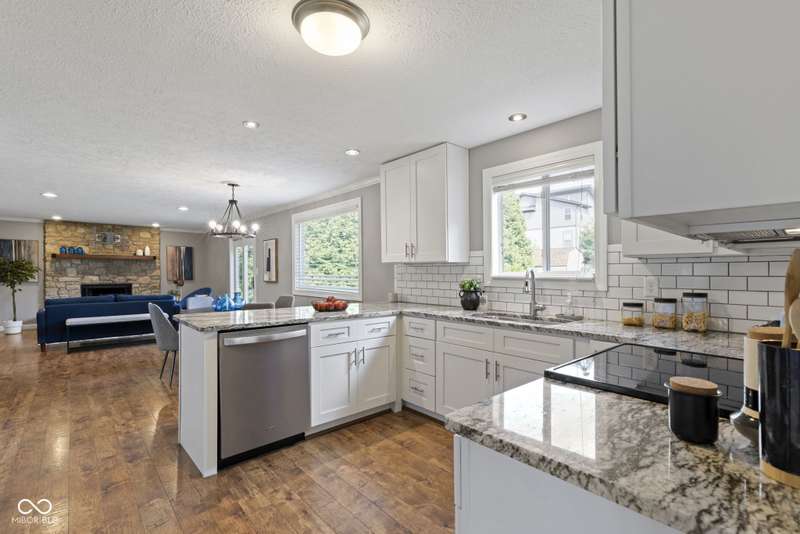 LOCATION doesn't get better than this! Walk to Nickel Plate district & all it has to offer +/- 15 minutes & Roy G. Holland Park in the center of the neighborhood* This fabulous contemporary updated home has so much to offer including a 1/2 acre lot with NO HOA & well manicured landscaping* Just step inside and you'll fall in love with the vaulted 2 story ceiling in the living room with views of the upstairs white craftsman style railing plus floor to ceiling windows which stream tons of natural light* Glass french doors open into the office/flex room* Fully remodeled kitchen ('19) boasts new white 42" cabinets w/soft close dove tailed construction drawers & cabinets, subway tiled backsplash, granite tops w/additional seating & all stainless appliances stay* Kitchen opens into the spacious breakfast nook with large picture window overlooking the beautiful fully fenced backyard & cozy family room with floor to ceiling stone fireplace w/gas insert* Laminate wood flooring runs through those rooms* Washer & dryer stay too* Upstairs has 3 beds & 2 full baths* Primary suite w/walk in closet & en suite bath offering double vanity & walk in shower w/custom tile* Crown molding in FR, breakfast rm, beds 2 & 3* Replacement vinyl windows thruout* Newer mechanicals incl. gas furnace ('23), A/C ('22), gas water heater ('23)* Outside you'll find great outdoor living/entertaining space on your covered front porch & oversized concrete back patio* Private backyard surrounded by large mature Evergreens which give privacy year around* Shed w/loft & electricity + playset* Hard to find a private 1/2 acre lot walkable to downtown Fishers in a move in ready home at this price!