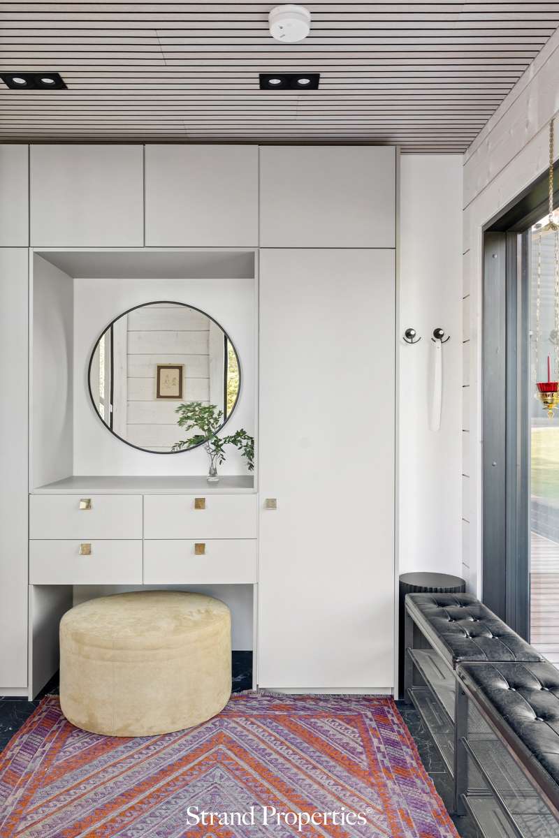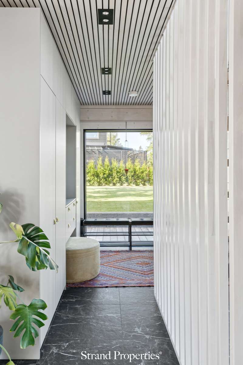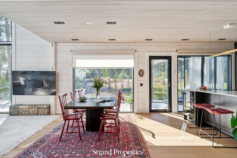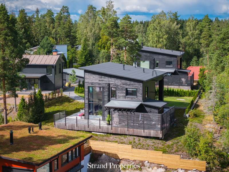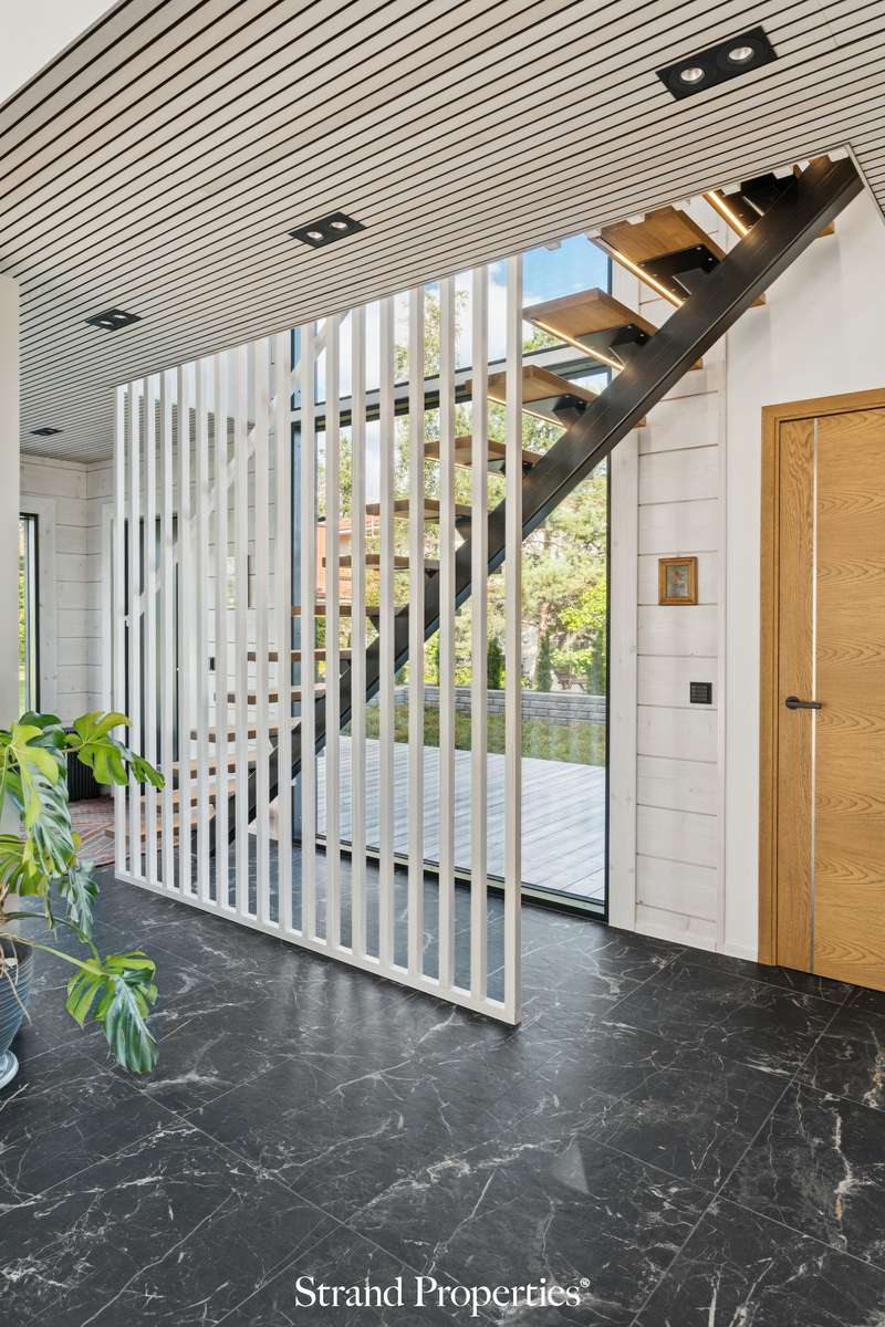 Moderni Kuusamon hirsitalo 2022, venepaikka ja 2 auton katospaikka Karhusaaren merellisellä alueella. Karhusaaren vehreässä ja merellisessä ympäristössä odottaa upea koti, joka yhdistää perinteisen hirsirakentamisen lämpimän tunnelman ja modernin arkkitehtuurin selkeän linjakkuuden. Tämä 2022 valmistunut Kuusamon Hirsitalojen edustava omakotitalo tarjoaa 179 m² laadukasta asuintilaa kahdessa kerroksessa sekä venepaikan Karhusaaren yhteisrannasta. Sisääntulokerroksessa olohuoneen 5,5 metrin huonekorkeus ja suuret ikkunat tuovat luonnon osaksi sisustusta - näkymissä yhdistyvät metsä ja meri. Noblessan moderni keittiö marmoritasoineen ja integroiduilla Boschin laitteilla kutsuu kokkaamaan ja kokoontumaan ison saarekkeen ympärille. Olohuoneen ja keittiön jatkeena on lasitettu terassi, jolta avautuu näkymä etelään. Kodissa on kolme makuuhuonetta, joista master bedroomissa on oma vaatehuone sekä käynti lasitetulle parvekkeelle.