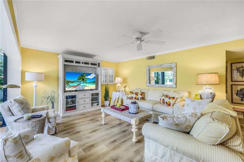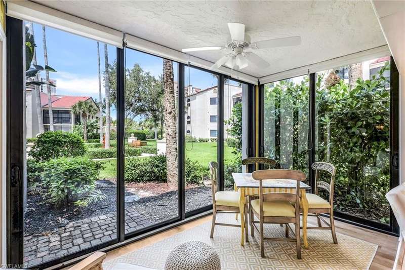 Experience the inspired lifestyle of Valencia at Pelican Bay! This first floor 3 Bedroom/2 Bath home is light and bright with a cottage inspired interior perfect for Florida living. There is plenty of space for you and your guests including the enclosed sunroom with a palm filled quiet courtyard view. The beautifully designed kitchen is sure to please any chef. There is covered carport parking for your vehicle and a large sun-drenched pool is just steps away for your daily enjoyment. Valencia residents have access to the tram to the beach with restaurants as well as the world class amenities of Pelican Bay. High end shopping, dining, and entertainment are also close by.