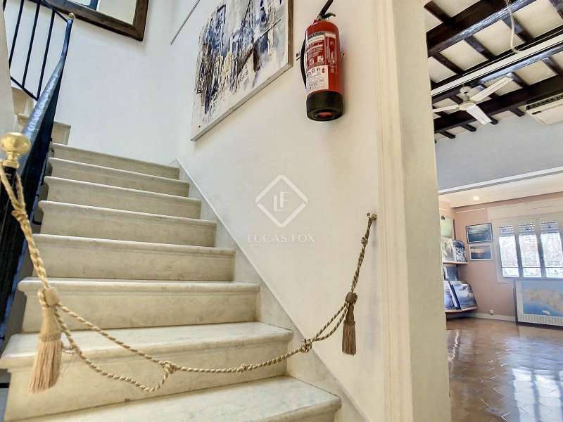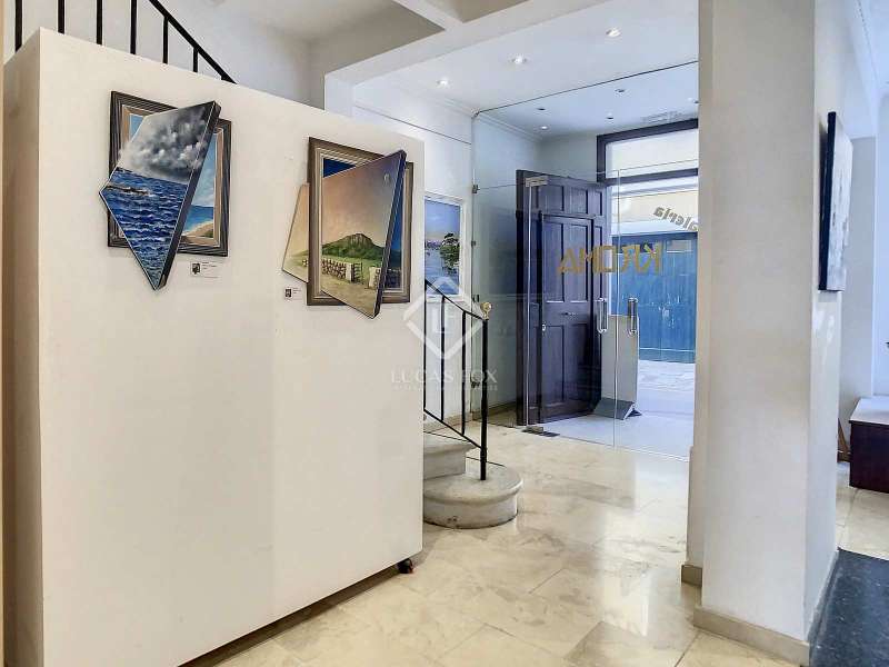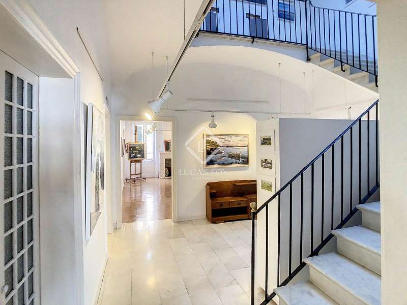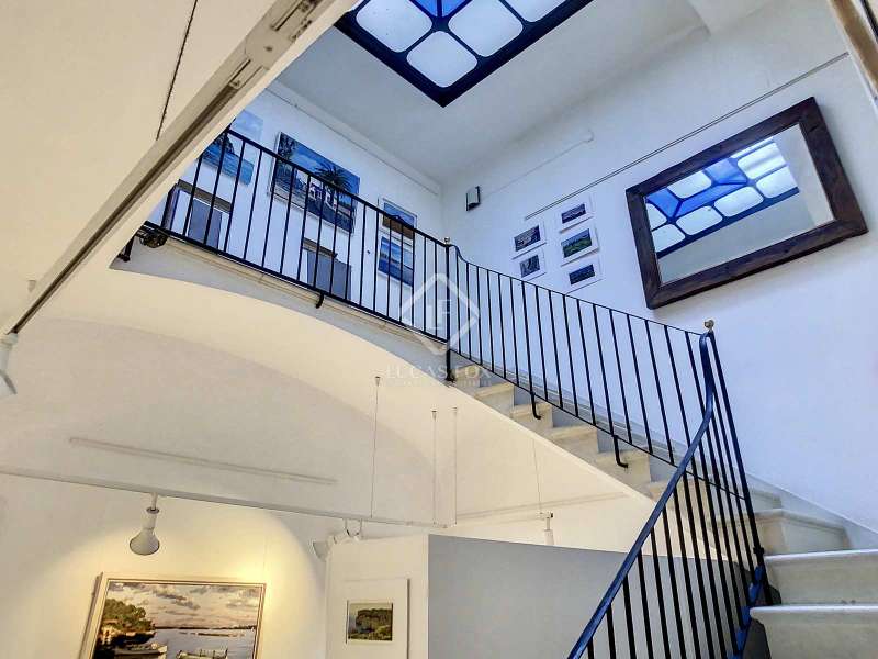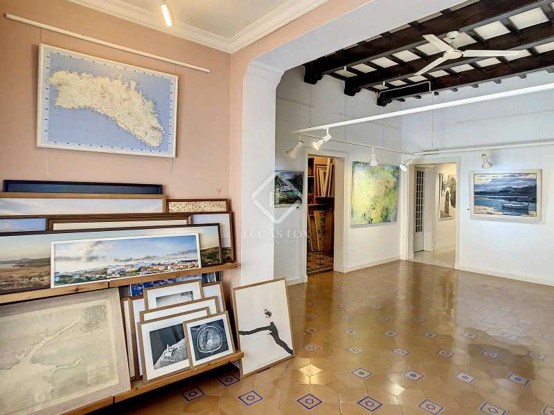 Lucas Fox presents this wonderful 612 m² house in the heart of the old town of Maó. The property is distributed over four floors plus a beautiful basement with the typical arches and barrel vaults, as well as two terraces on the attic. We will reach one of them from a historic tower, which offers unforgettable views of the old town and the port of Maó. Historically, this watchtower was built to watch ships at the mouth of the harbor carrying goods. Currently the house is a beautiful, well-preserved historic building that houses a gallery and a framing workshop with a living space that consists of a living room, kitchen diner, bedroom and full bathroom . Upon entering, after crossing the wooden doors and the glass doors, you enter the large room where the gallery begins. Behind the counter, where you can get information, you will see the beautiful Menorcan patio. Through this patio, you can go up the stairs to the first floor, which lead to the large fully equipped kitchen. Back at the gallery entrance, the imposing stone staircase also leads us to the first floor, where we find several rooms furnished as a gallery and several workshops, where picture frames are currently manufactured. On this floor there is also a fully equipped bathroom and through a door we access the kitchen with access to the terrace with stairs to access the patio. On the second floor we have the living area, with a large living-dining room with fireplace and a large bedroom. On this floor there are other work areas and behind another door, a staircase takes us exterior. On two different levels, there are two terraces with views of the city and the port of Maó. The highest terrace is located on the turret which has historical significance and offers an incredible view of the old town. The spaces in this house are spacious and offer many possibilities to convert them to the taste and needs of the new buyer. A unique and elegant property with special details, such as teak doors, antique hydraulic floors, leaded glass skylight and exposed wooden beams, among others. An ideal house to live all year round or spend time with family and/or friends. Contact us for more information or to arrange a visit.