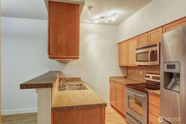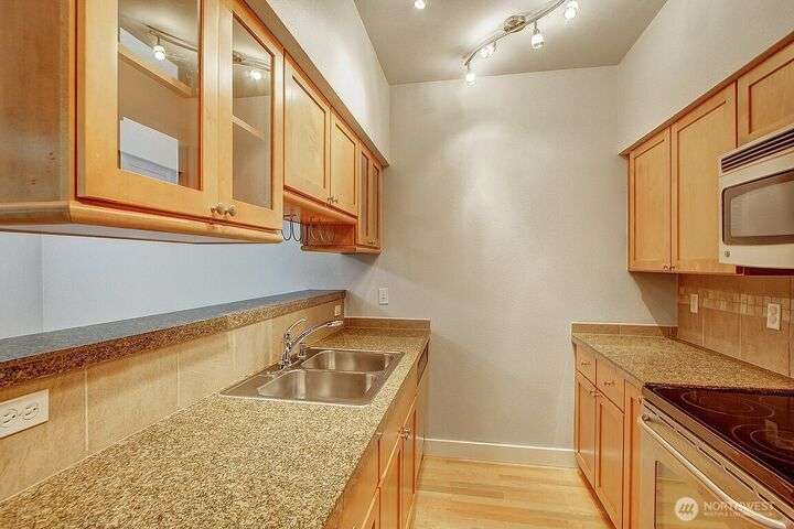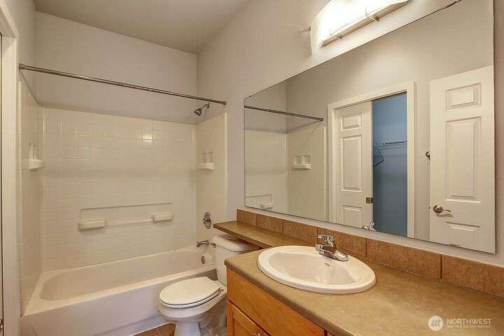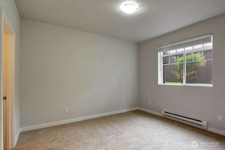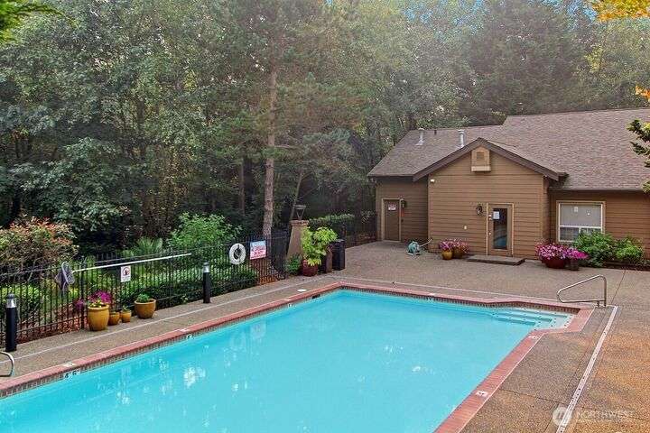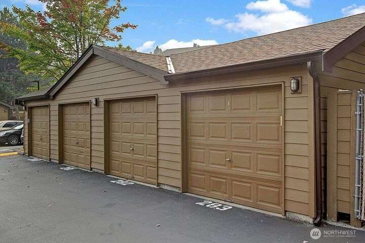 This quaint Brookwood Condominium home features 2 bedrooms, 2 bathrooms, high ceilings, updated kitchen with SS appliances and plenty of closet space. The Master bedroom has a huge walk-in closet & attached bath. Enjoy the private and peaceful deck overlooking a greenbelt. Includes one individual garage parking space plus one additional assigned uncovered parking space. The Brookwood Condo community offers an outdoor in-ground pool, athletic court, fitness room and clubhouse. Live, work, and play all in one place. The location is quiet and secluded, yet convenient to Mill Creek Town Center and highways. Tenant pays all utilities. Non-smoking. One small dog or cat allowed.