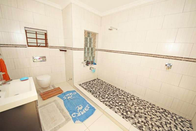 Each of the four generously sized bedrooms offers comfort, with some featuring lounging areas and built-in cupboards. The home includes four beautifully appointed bathrooms, two of which are en-suite, complete with modern fixtures and fittings.