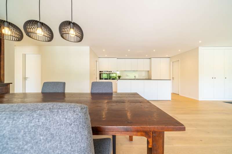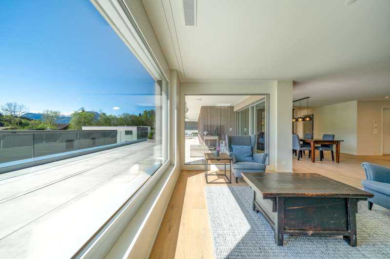 Exclusive living in a dreamlike alpine setting: This 5.5-room terrace apartment meets the highest standards. A quiet location, Minergie standard, light-flooded design and a master bedroom with en-suite bathroom create a stylish home. The large sun terrace with distant views invites you to enjoy - perfect for anyone who values comfort, privacy and aesthetics.