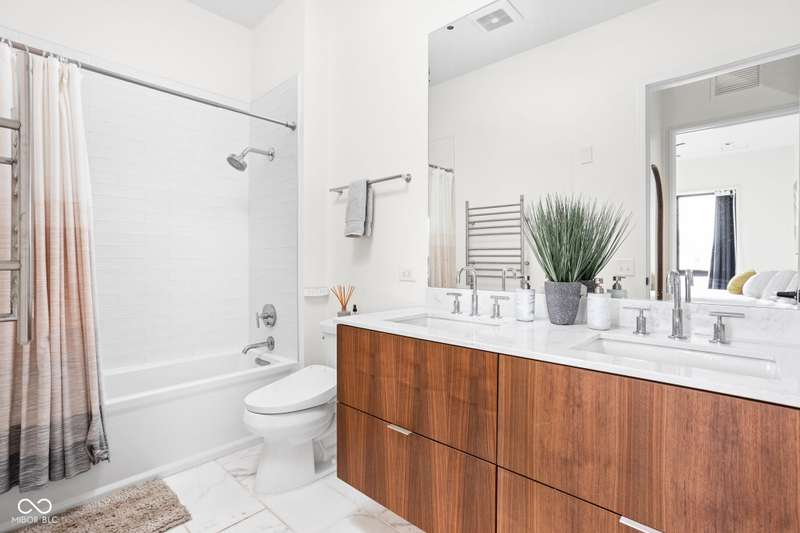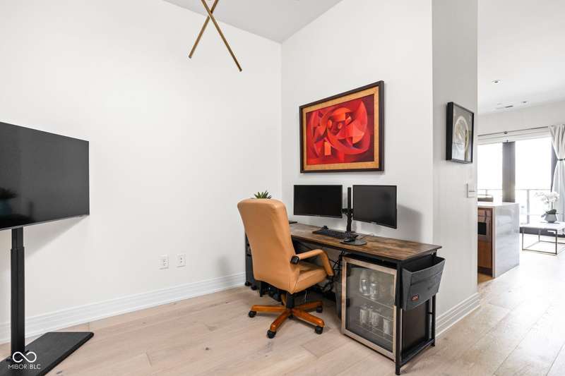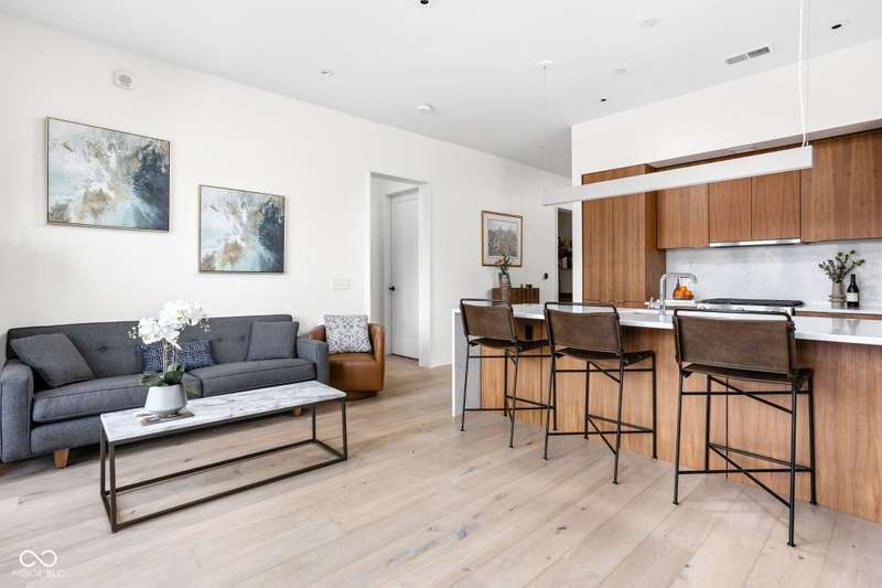 Experience luxurious, modern living in this beautifully designed 1 bed, 1bath condo located in highly sought-after Chatham Park. This stunning home features wide-plank oak flooring, custom walnut cabinetry, quartz countertops, and elegant marbled tile throughout. Enjoy the convenience of a built-in home office or soak up the sun while working from the oversized private patio. A flexible entryway space offers endless possibilities- perfect for a Murphy bed, bar area, or additional seating. Better than new, this condo comes equipped with a washer and dryer, plus custom motorized blinds for added comfort and style. A dedicated parking space and private storage unit are also included. Take advantage of top-notch community amenities including a library, fitness center, meeting room with kitchen, outdoor fireplaces, and grilling stations. All just steps from the vibrant restaurants and shops along Mass Ave and the dynamic Bottleworks District.