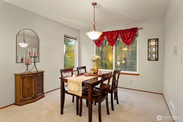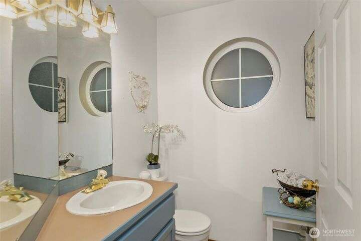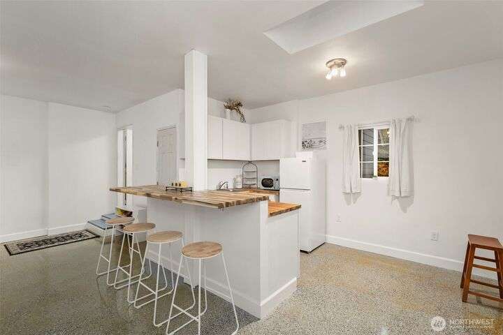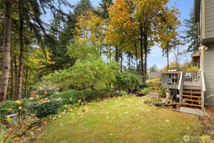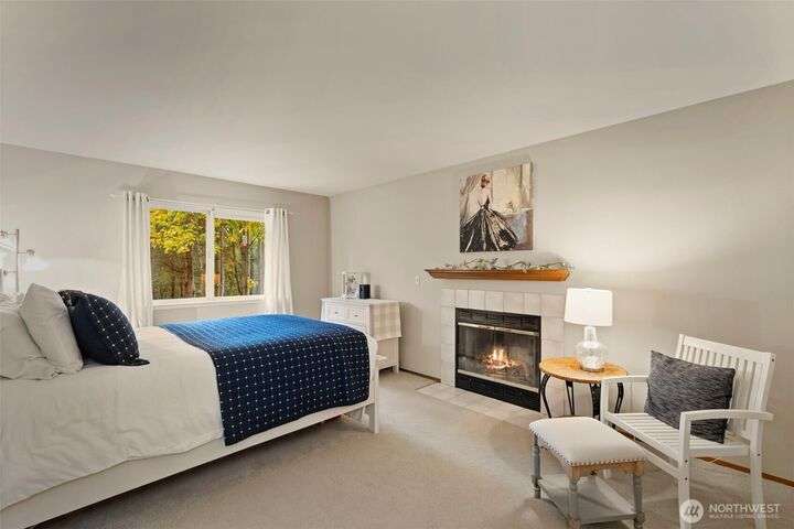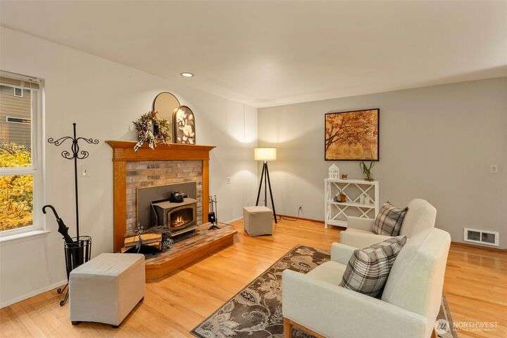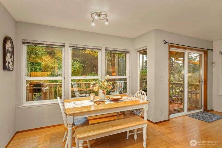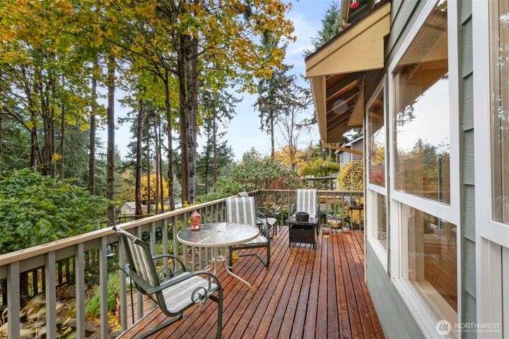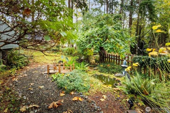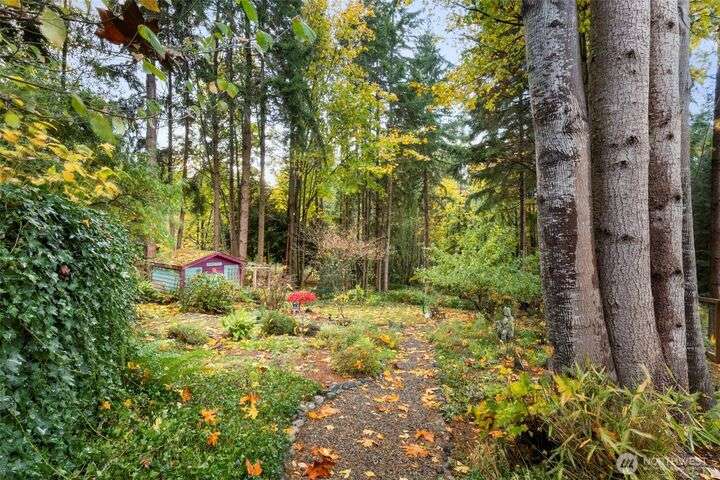 Tucked down treelined road just over a mile from downtown Kingston, this warm & welcoming 2,493 sq ft home rests on a private, garden-lined 0.57-acre lot. Sunlit main-floor spaces include formal living & dining with oak floors & vaulted ceilings, plus a comfortable kitchen/family room w/SS appliances, wood stove & slider to the deck & tranquil backyard. Upstairs, the inviting primary suite offers a wood-burning fireplace, generous closet & 5-piece bath w/soaking tub, along with 2 addt'l bedrooms & full bath. The finished, heated 2-car garage lives like an extra suite with newer kitchen...ideal for guests, multigen/studio space. Mature landscaping, winding paths, RV/boat parking, no HOA & easy access to ferries, shops & beaches. Insp. avail.
