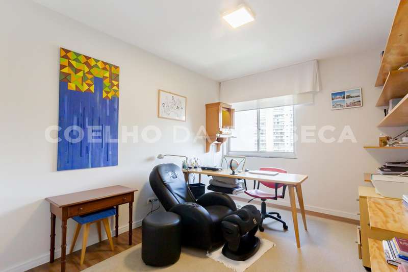 Suíte master, generosa, com closet bem planejado. Segundo dormitório funcional como quarto ou escritório, com possibilidade de criar um terceiro dormitório.\r